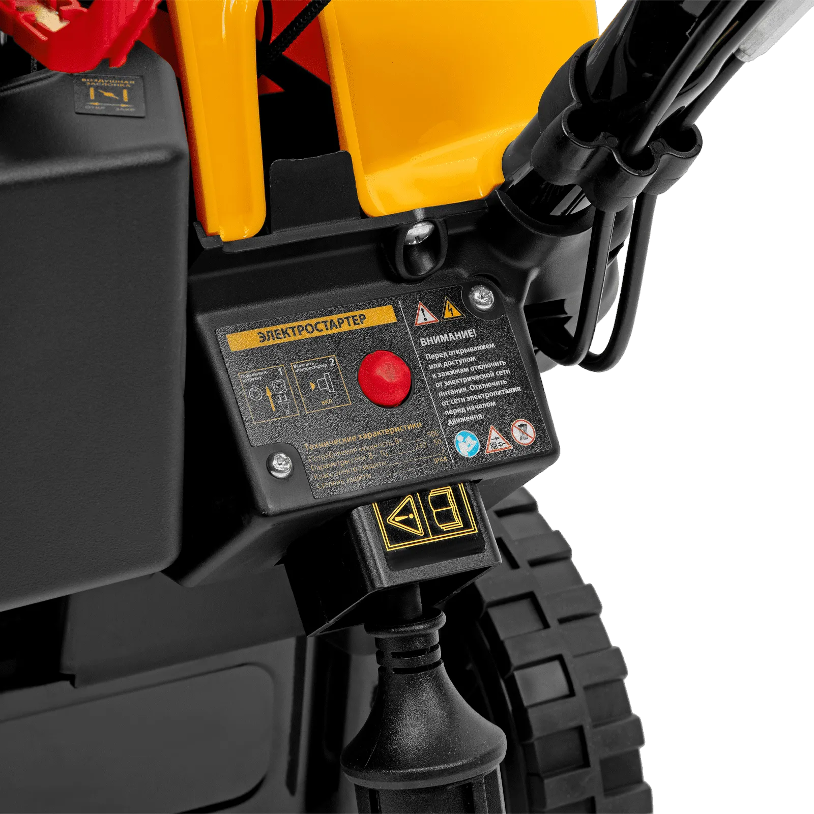 - Электростарт — для запуска двигателя достаточно нажать на кнопку, предварительно подключив машину к сети 230 В.