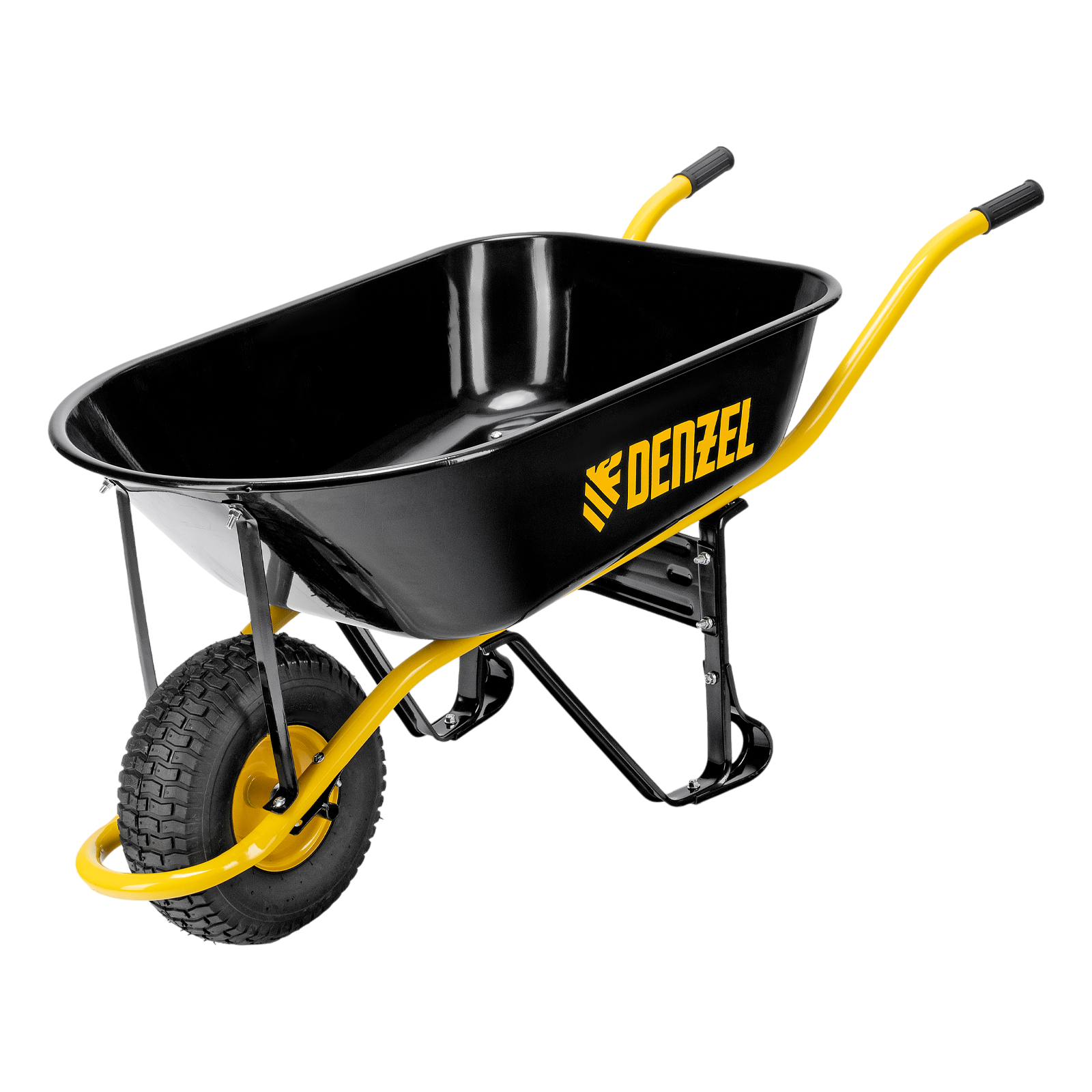 Усиленная строительная тачка Denzel 689965 с колесом 15 х 6,00-6, грузоподъемностью до 230 кг, с объемом кузова 130 л, предназначена для профессионального использования на строительной площадке и в сельском хозяйстве. С ее помощью можно транспортировать строительные грузы и различные сыпучие материалы.