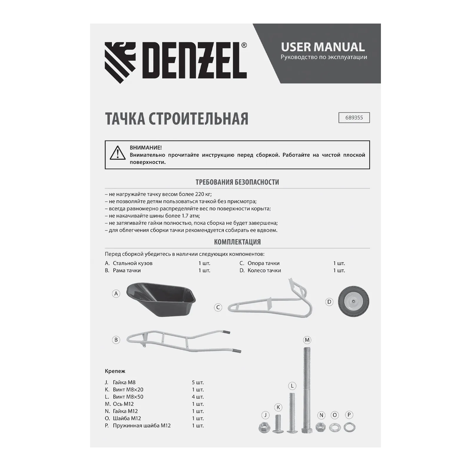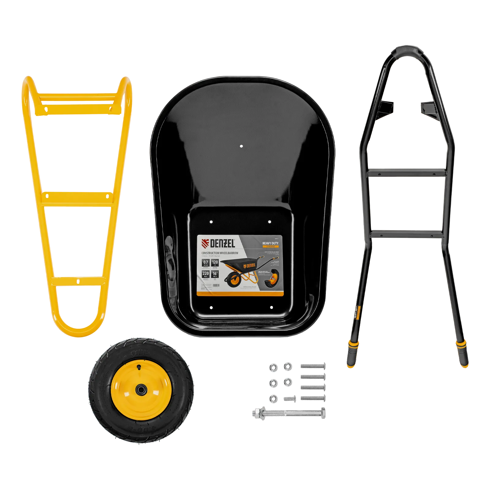 Усиленная строительная тачка Denzel 689355 с кузовом объемом 120 л и колесом размером 16 х 4.00-8 предназначена для транспортировки грузов массой до 220 кг. Позволяет перемещать строительные материалы, грунт, удобрения, садовый мусор, пригодится также во время сбора урожая. Усиленная конструкция выдерживает повышенные нагрузки, грузоподъемность 220 кг оптимальна для эффективного выполнения большого объема работ. Благодаря переднему упору удобно производить фронтальную разгрузку. Тачка незаменима на строительной площадке и на приусадебном участке, рекомендована для профессионального использования.