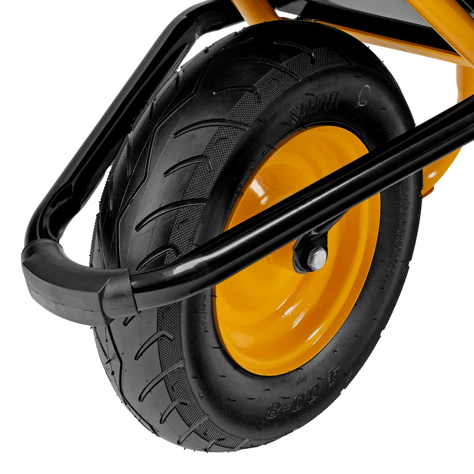- Продуманная конструкция — промышленный двухрядный подшипник закрытого типа обеспечивает плавный ход, а также защищен от попадания влаги и грязи, что продлевает срок службы тачки.