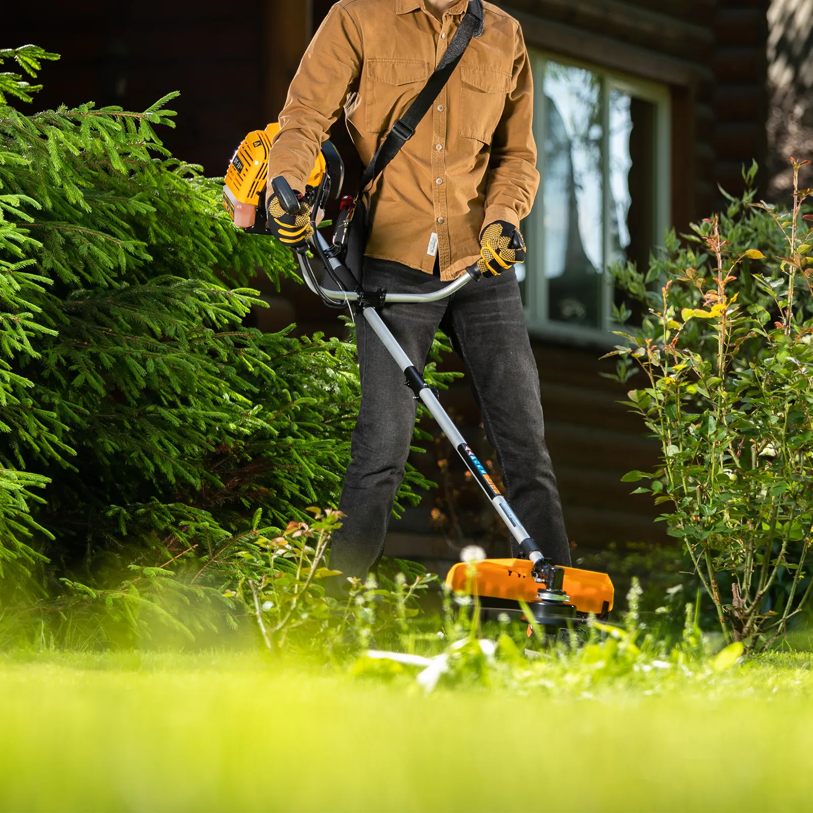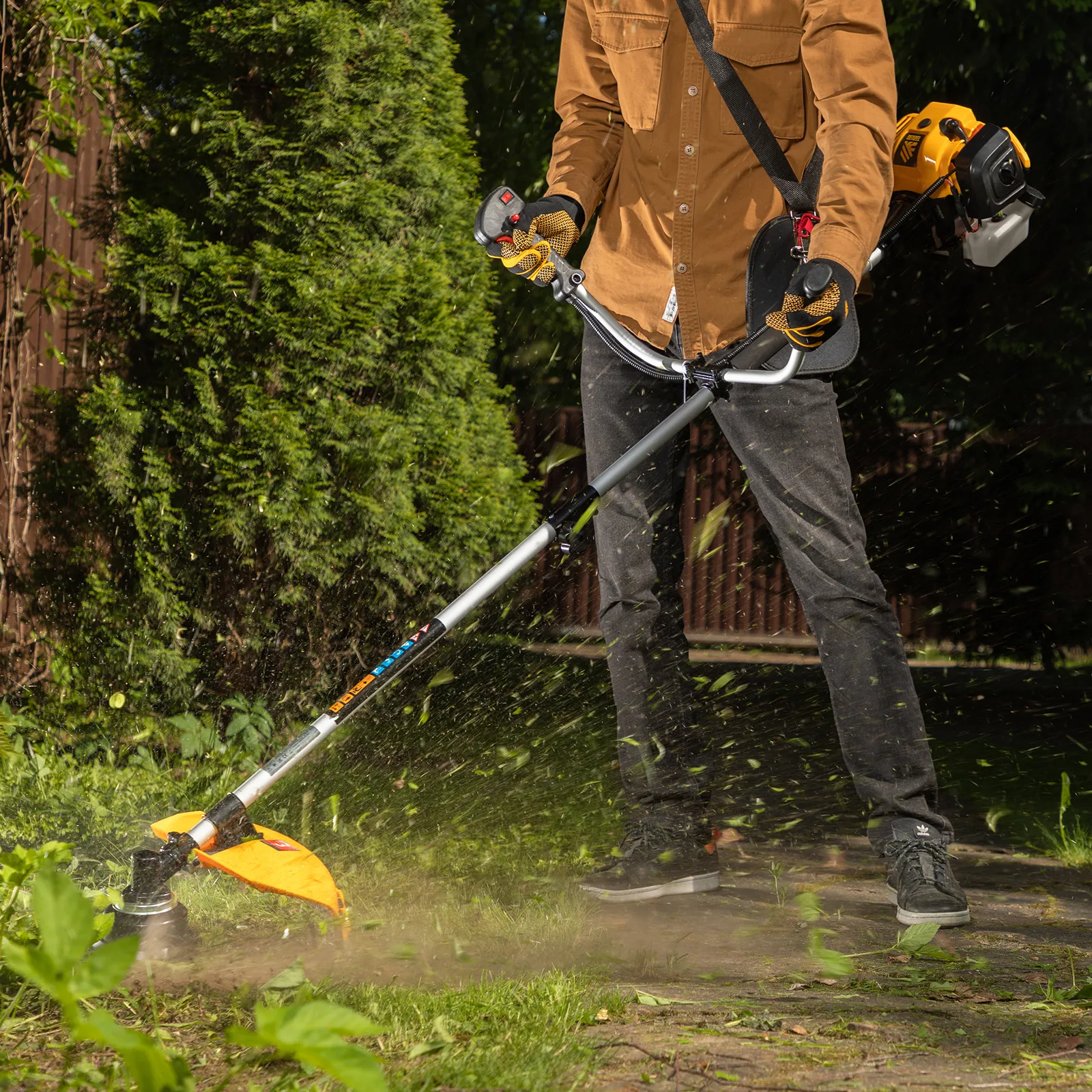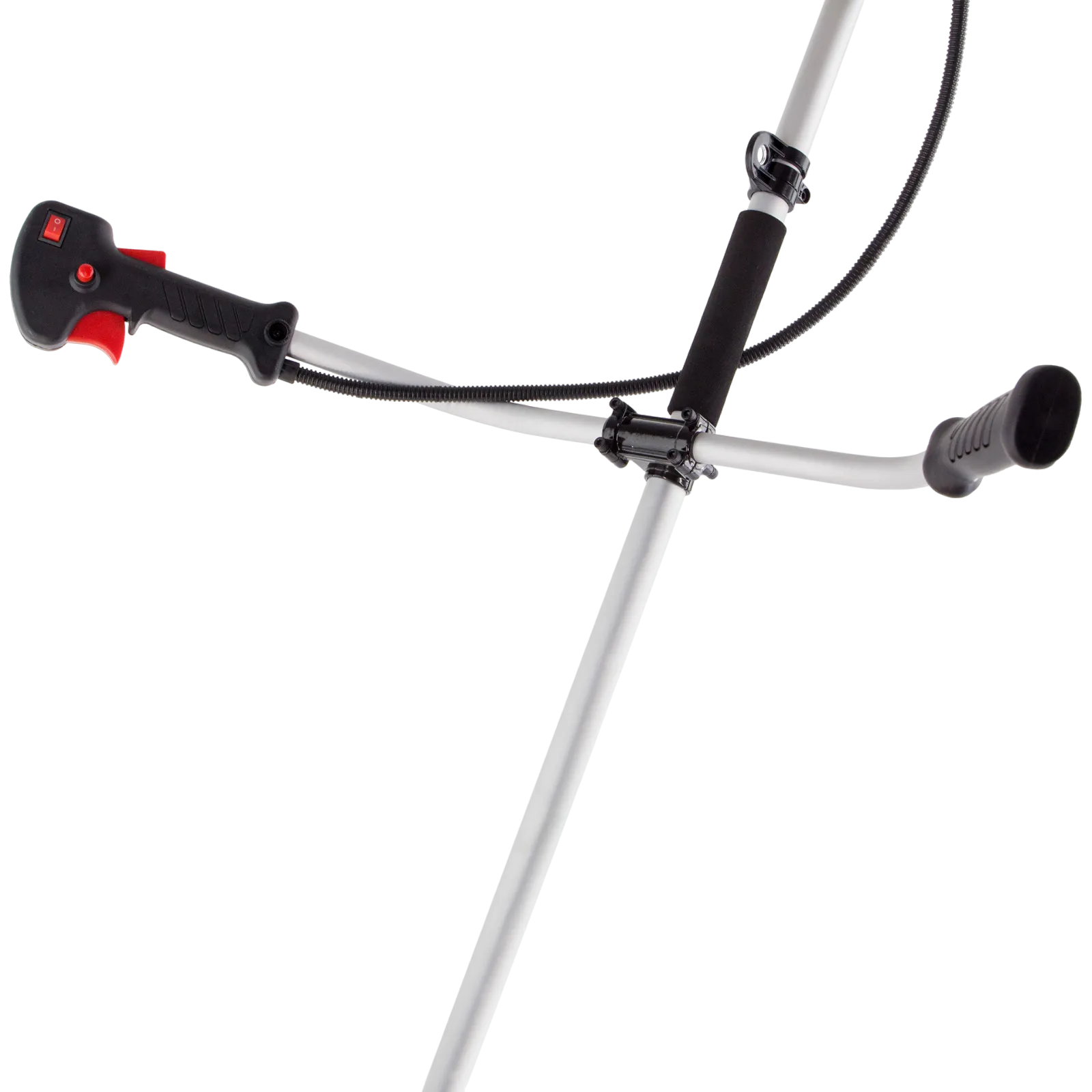 - Удобное хранение и транспортировка — штанга легко разбирается на 2 части, поэтому триммер не занимает много места.
