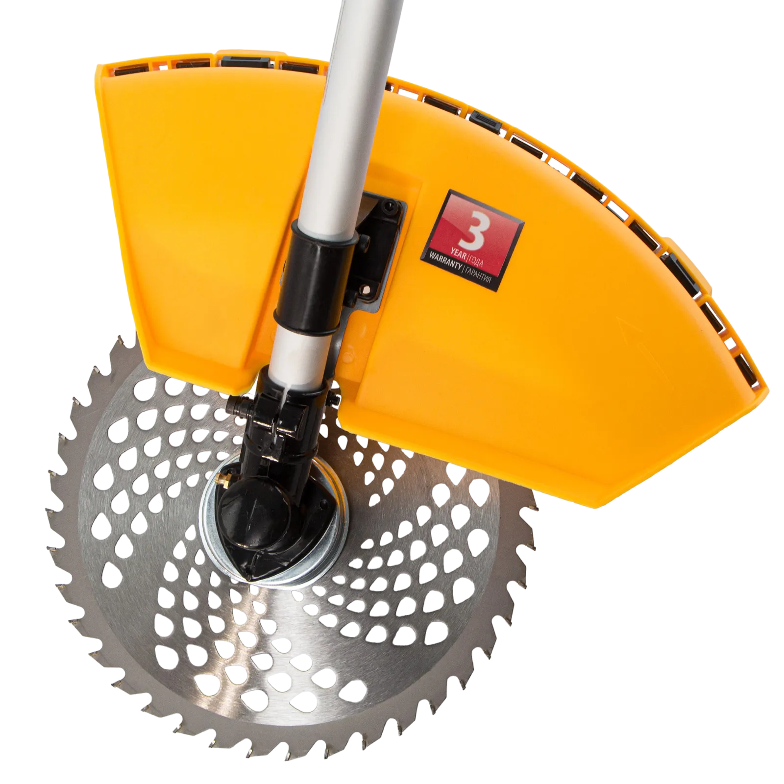 - Защита пользователя — кожух из прочного PA-пластика предотвращает вылет травы, попадающих под нож камней и веток.