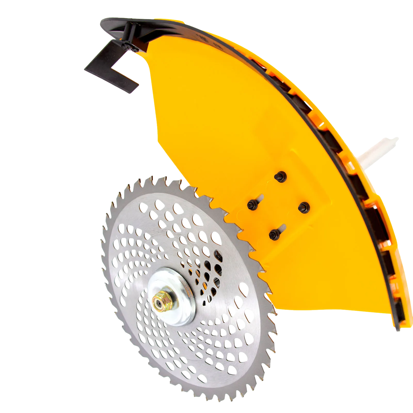 - Безопасность — защитный кожух из прочного PA-пластика исключает отлетание веток и камней на пользователя.