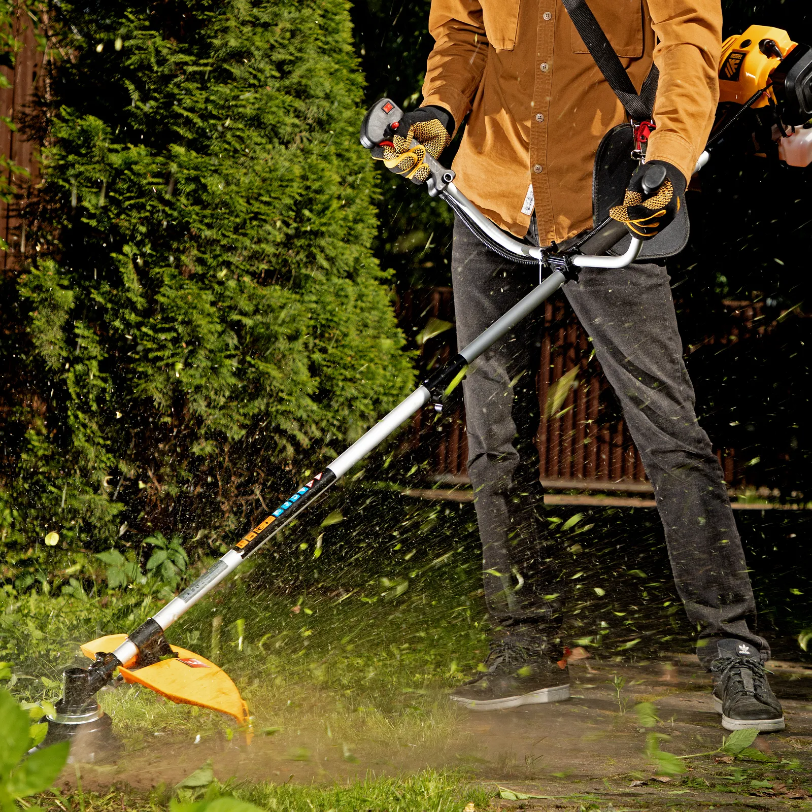 - Точная балансировка — положение рукоятки, режущего инструмента и двигателя отрегулировано таким образом, чтобы было удобно удерживать триммер даже при длительной эксплуатации.