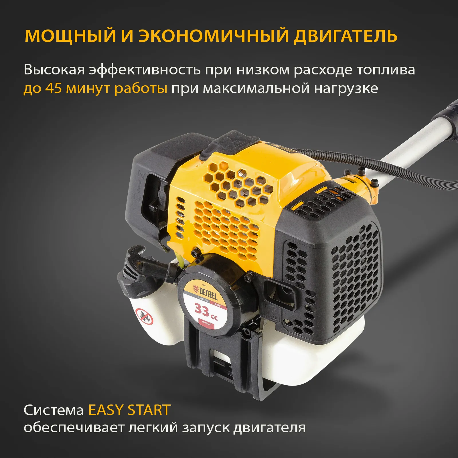 - Легкий старт — пусковая система Easy Start облегчает и ускоряет включение триммера даже после долгого простоя.