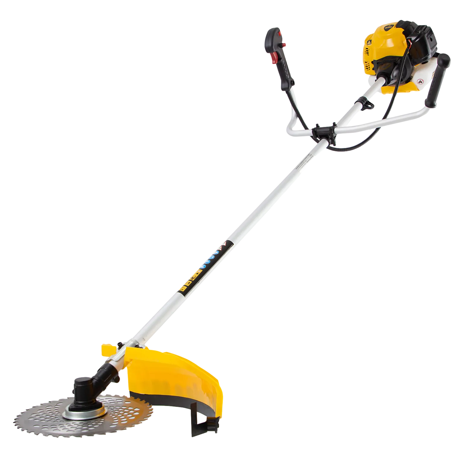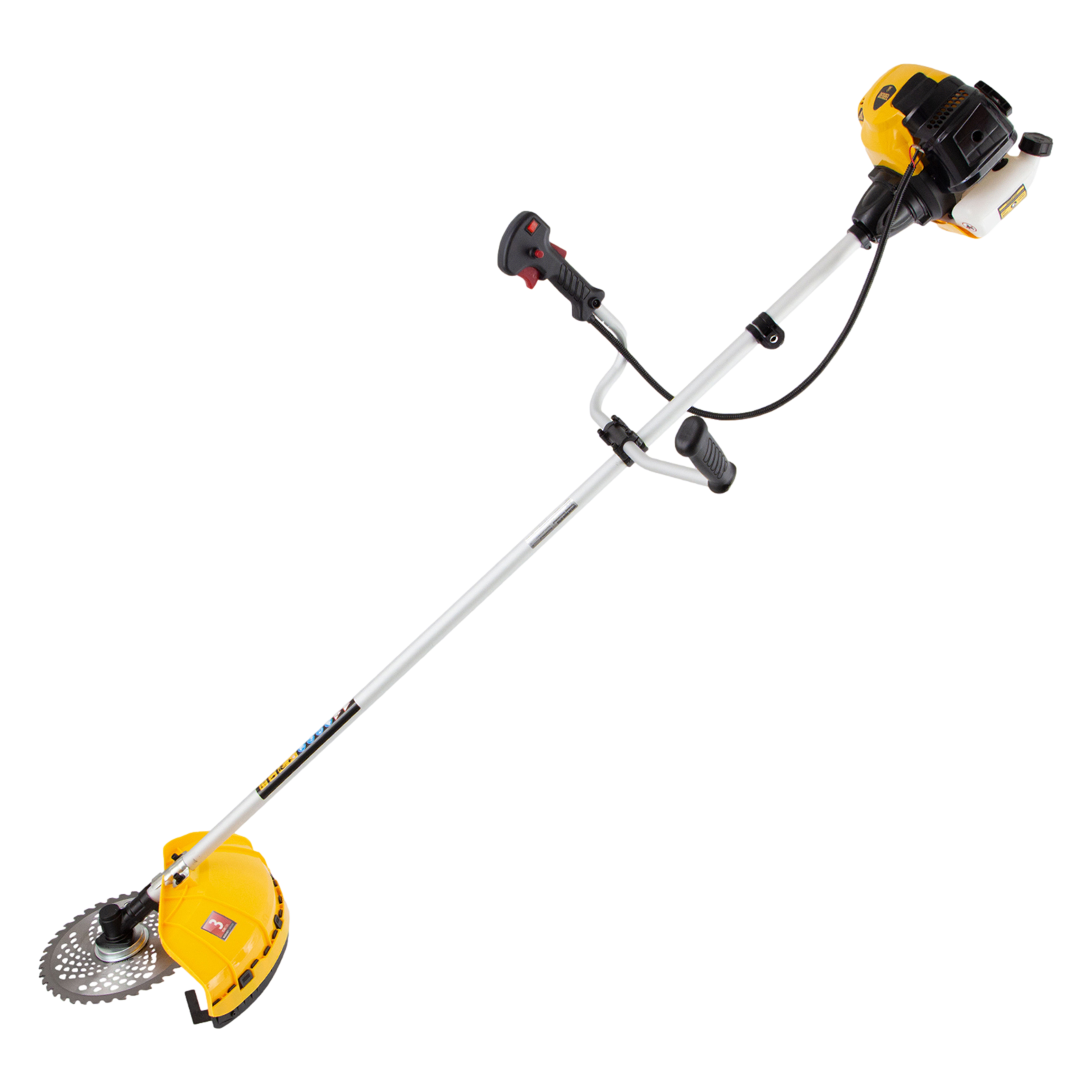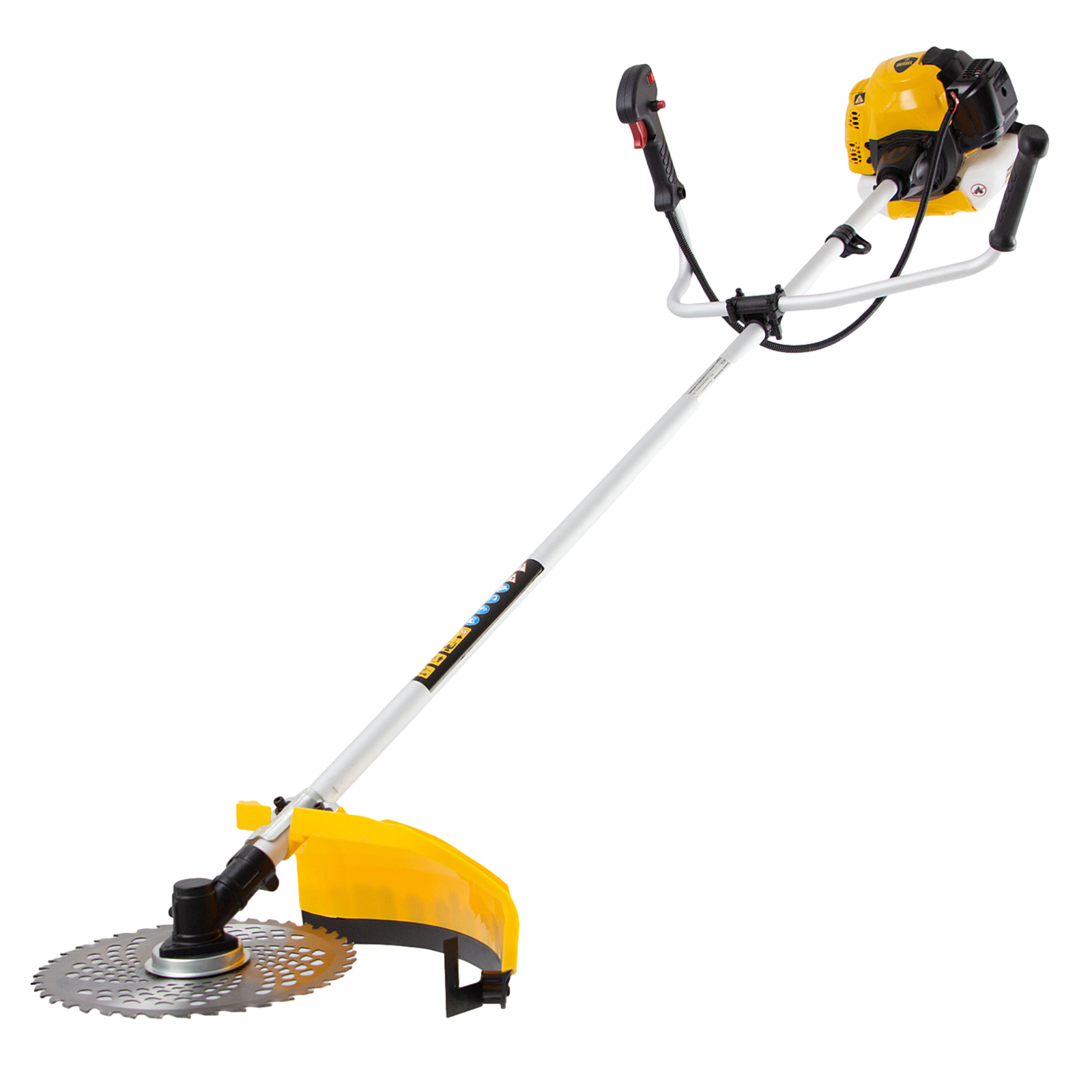 Бензиновый триммер Denzel DTL-33 96261 с объемом двигателя 33 см3 и неразъемной штангой подходит как для частичного подравнивания газона, так и скашивания травы всех типов, в том числе с жесткими древовидными стеблями (полыни, крапивы, лебеды, борщевика). Также эффективен для срезания кустарника и молодых побегов деревьев с диаметром стволов до 10 мм. Два режущих инструмента — леска и пильный диск — работают на скорости 9500 об/мин и обеспечивают ширину скашивания 42 и 25,5 см соответственно. Двигатель мощностью 1,8 л.с. экономично потребляет топливо, поэтому часто заправлять бак не придется. Триммер не требует подключения к стационарному источнику питания и может использоваться в самом отдаленном уголке дачного участка.