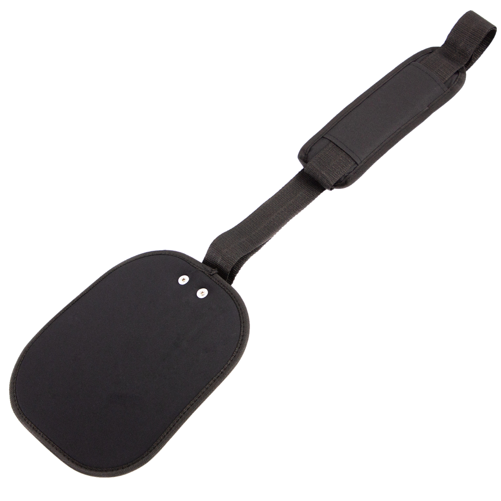 - Комфортная работа — плечевой ремень снижает нагрузку на руки, защита бедра предотвращает появление синяков от ударов штангой.