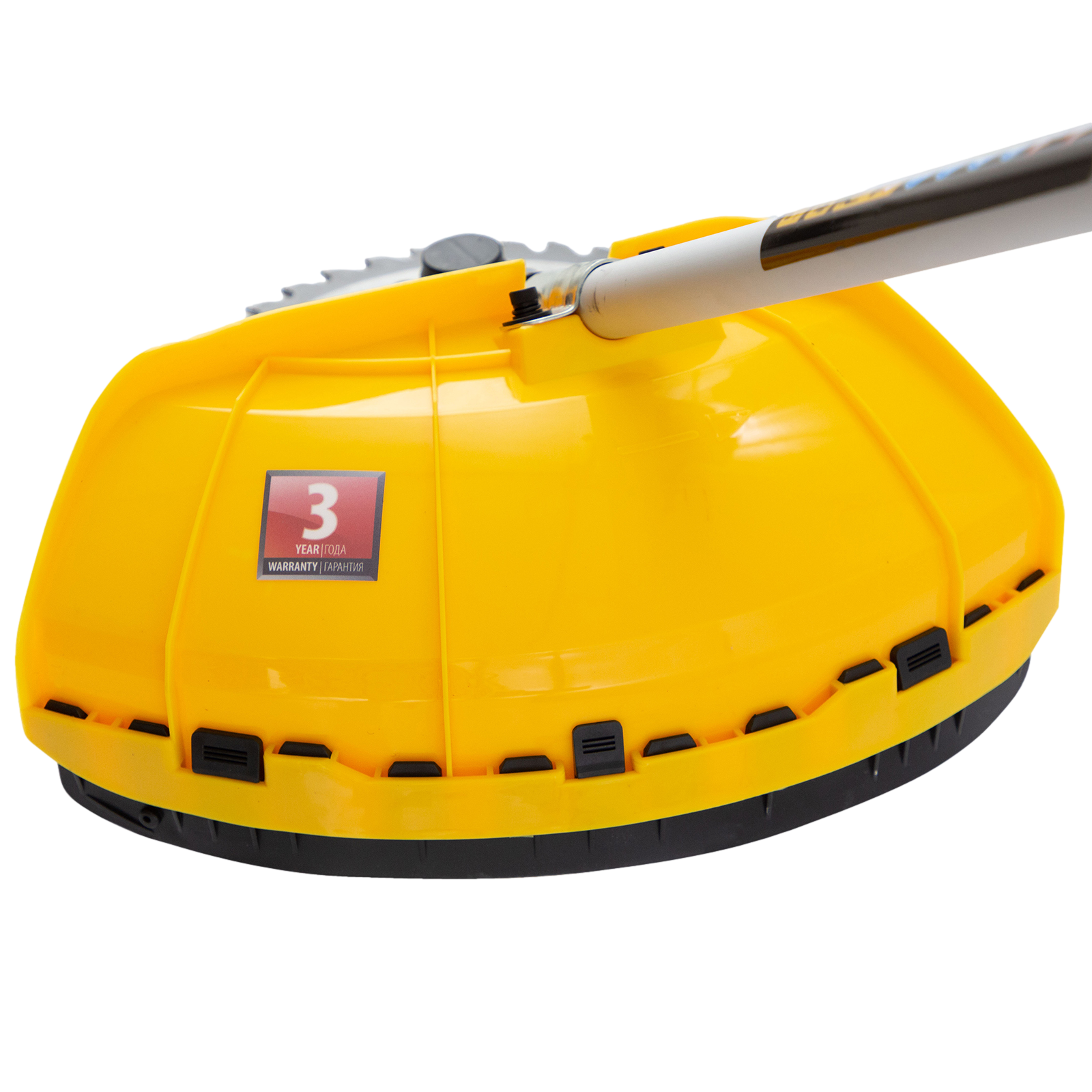 - Автоматическое укорачивание лески — в случае, если длина корда превышает допустимую, лезвие на кожухе триммера подрезает его, предотвращая лишнюю нагрузку на двигатель и его перегрев.