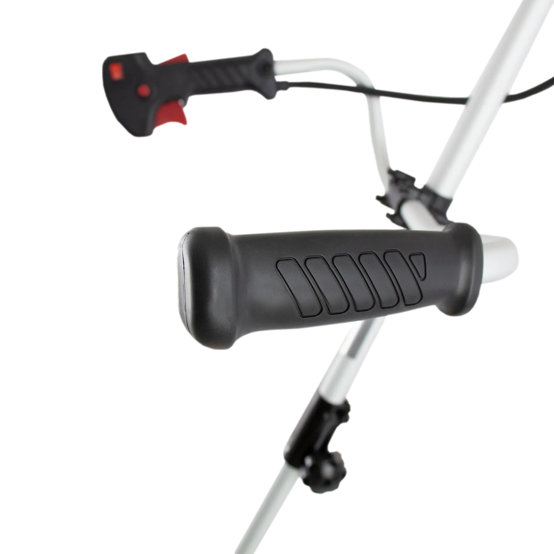 - Эргономичность — велосипедная рукоятка имеет асимметричную форму, поэтому триммер удобно удерживать и направлять.
