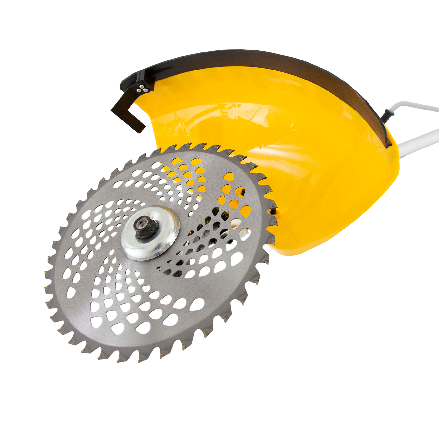 - Безопасная работа — защитный кожух закрывает режущую часть, поэтому в сторону пользователя не отлетают ветки и камни.