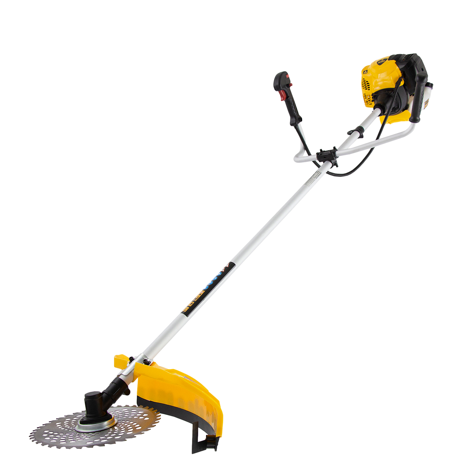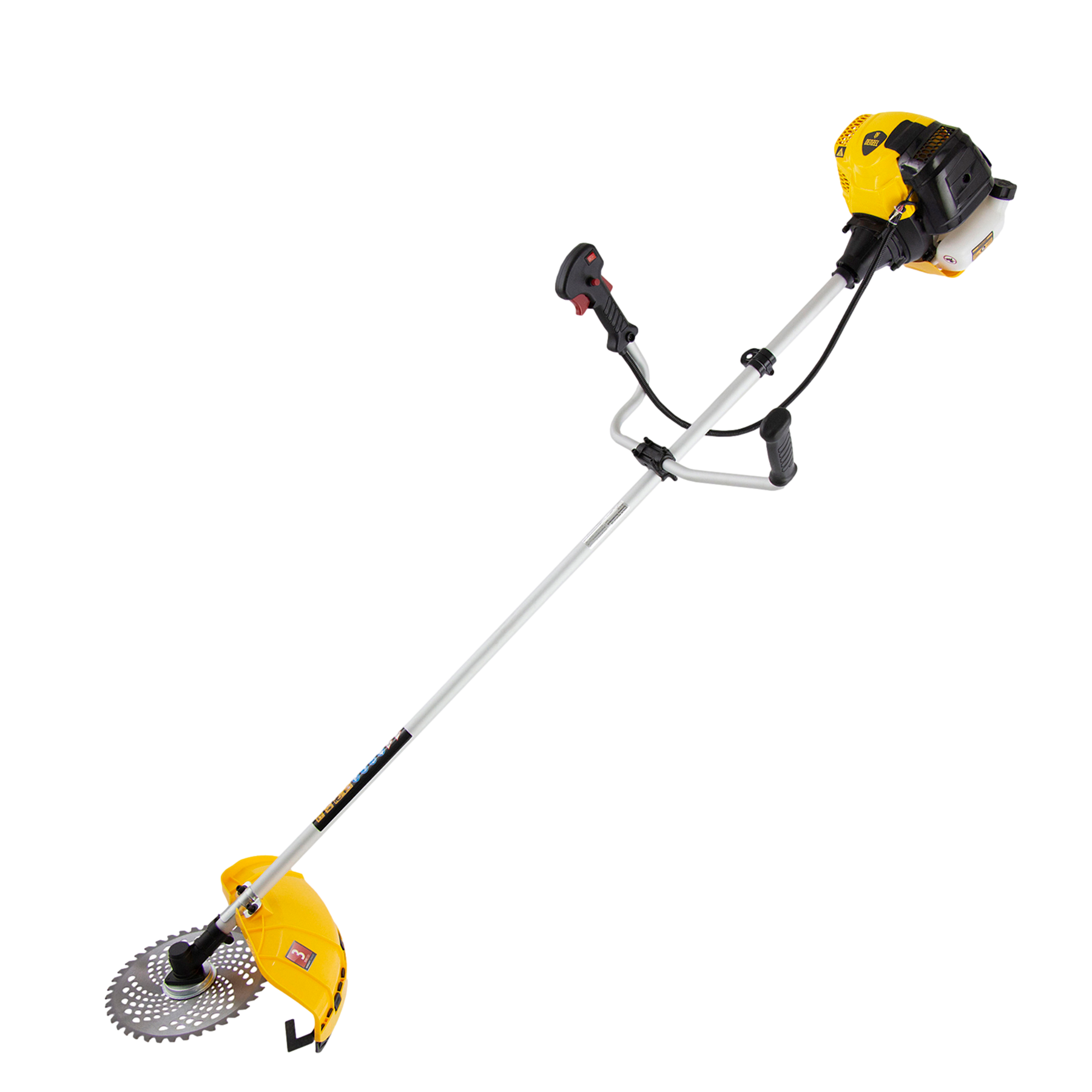 Бензиновый триммер Denzel DTL-52 96265, с увеличенным до 52 куб. см объемом двигателя и неразъемной штангой, состоит из 2 частей и отличается самыми высокими параметрами работы из линейки DTL. Подходит как для частичного подравнивания газона, так и скашивания травы всех типов, в том числе с жесткими древовидными стеблями (полыни, крапивы, лебеды, борщевика), а также срезания кустарника и молодых побегов деревьев с диаметром стволов до 10 мм. Два режущих инструмента — леска и пильный диск — работают на скорости 9500 об/мин и обеспечивают ширину скашивания 42 и 25,5 см соответственно. Двигатель мощностью 3 л.с. экономично потребляет топливо, поэтому часто заправлять бак не придется. Триммер не требует подключения к стационарному источнику питания и может использоваться в самом отдаленном уголке дачного участка.