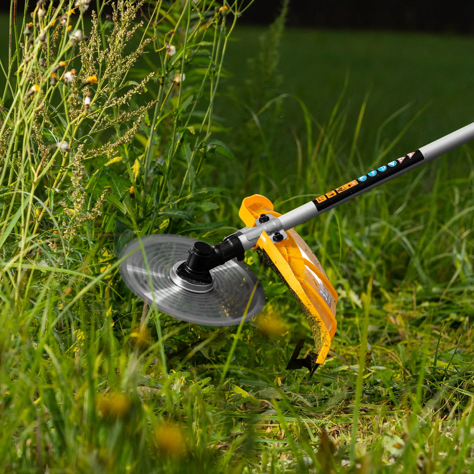 - Легкая установка оснастки — триммер удобен для обработки участков с разным типом растительности.