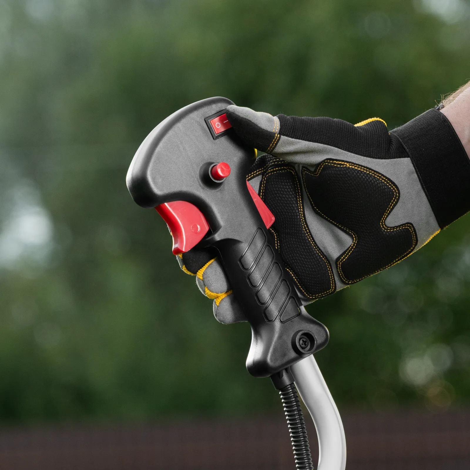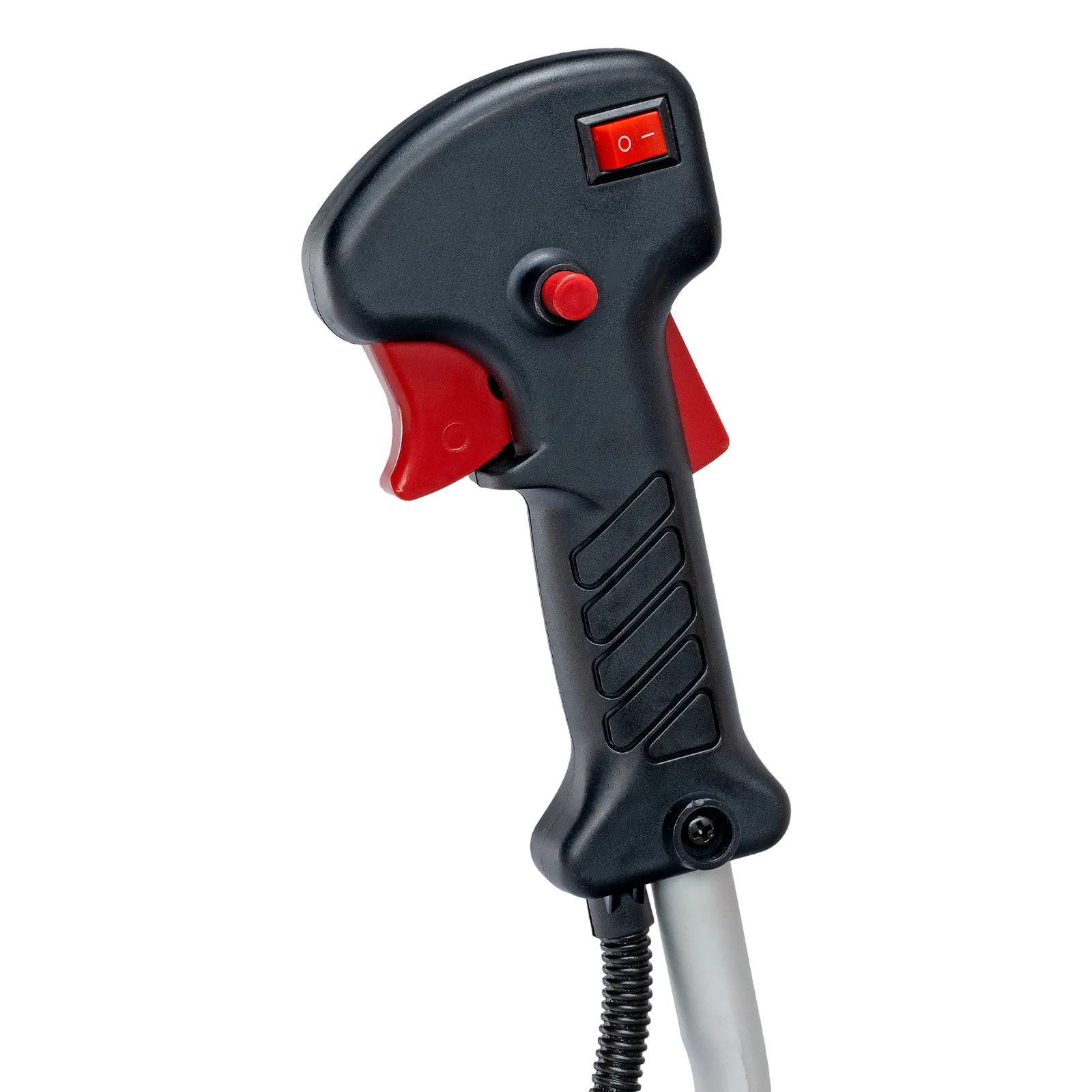 - Эргономичность — велосипедная рукоятка имеет асимметричную форму, поэтому триммер удобно удерживать и направлять.