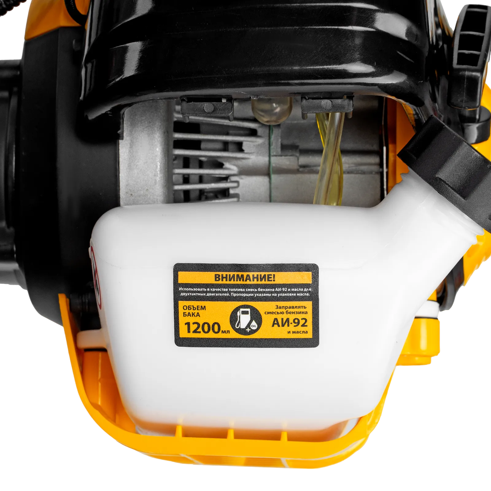 - Удобное приготовление топливной смеси — бензин и смазочное масло смешиваются в дозаторе (входит в комплект) и заливаются в бак.