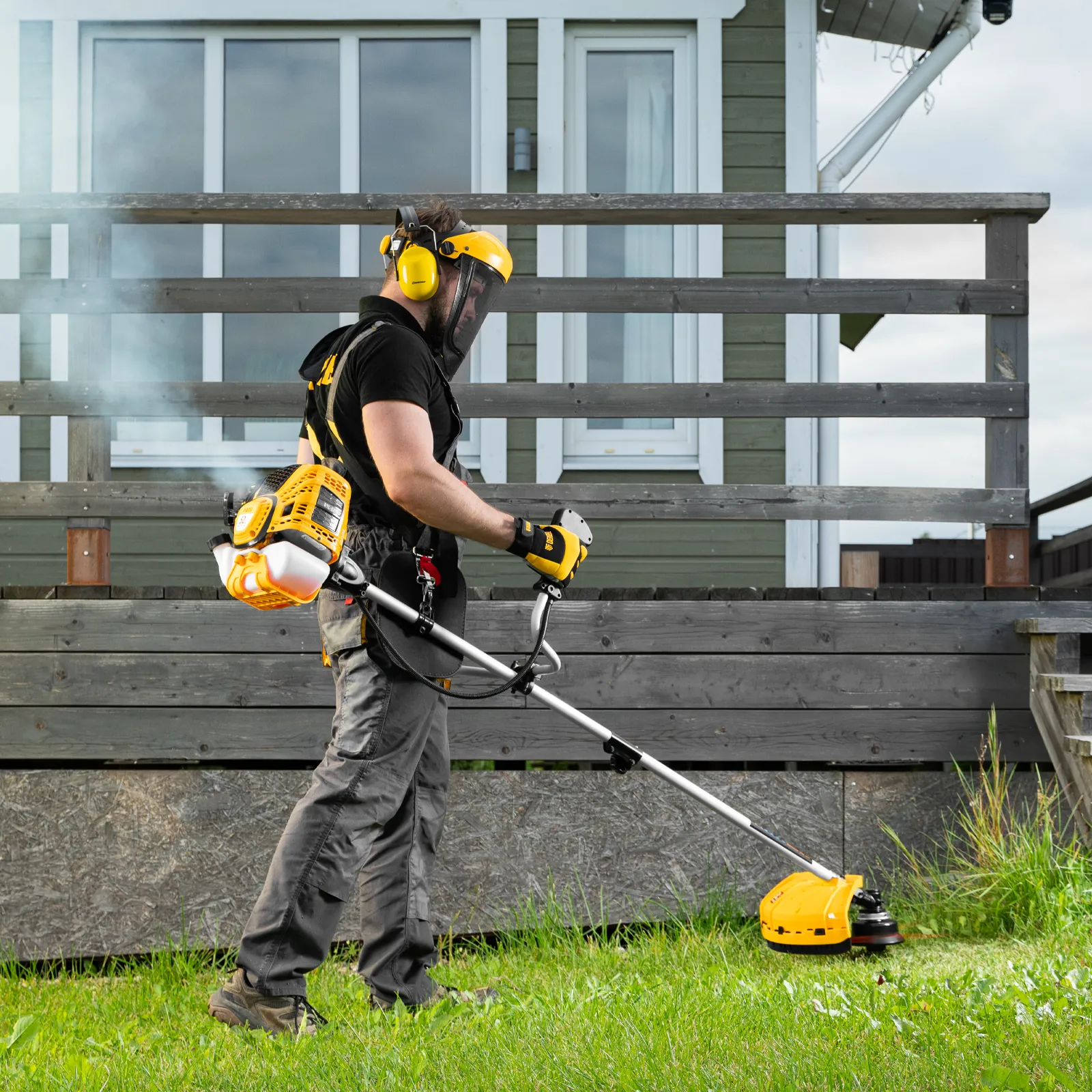 - Мобильность — небольшой вес 7,8 кг и качественная балансировка позволяют легко перемещать триммер и маневрировать даже на сложных участках.