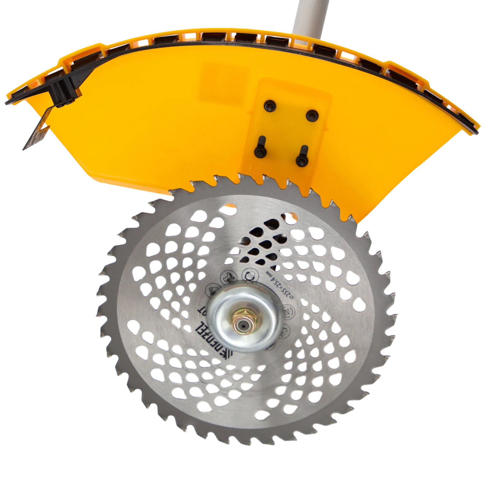 - Безопасность — кожух из прочного PA-пластика защищает пользователя от вылетающей травы, камней, веток и мелких частиц.