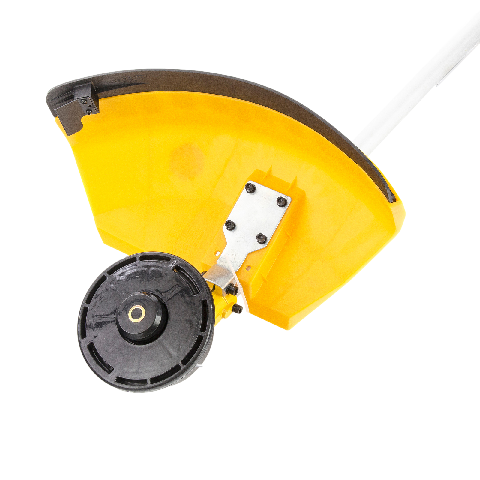 - Безопасность — прочный пластиковый кожух защищает пользователя от вылетающей травы и мелких частиц.