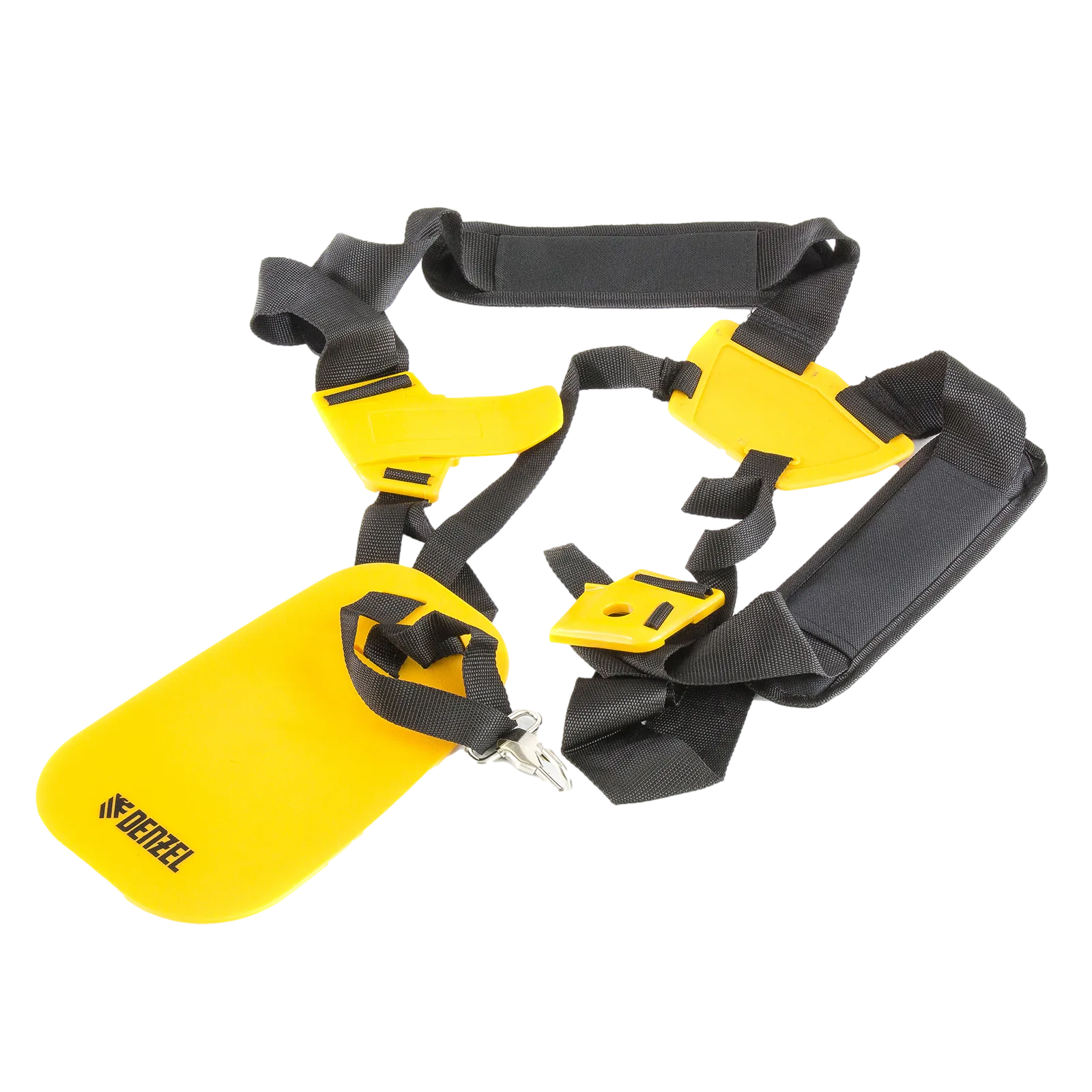 - Комфортная работа — плечевой ремень с защитой бедра снимает нагрузку с рук оператора, регулировка ремня по росту снимает проблему удержания триммера для высоких людей.