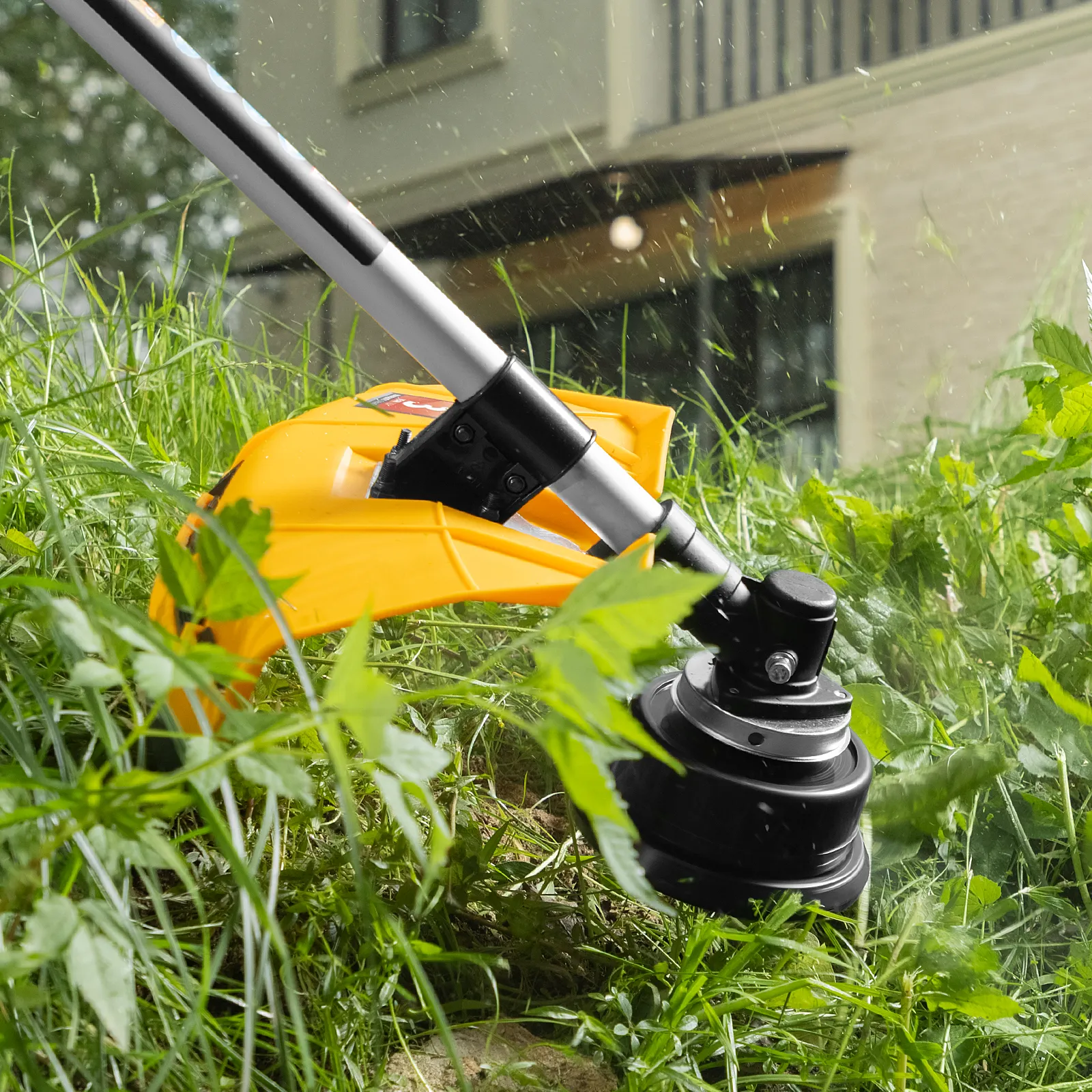 - Автоматическое подравнивание лески — ограничительный нож на кожухе отрезает лишний корд, что позволяет предотвратить перегрузку и перегрев двигателя.