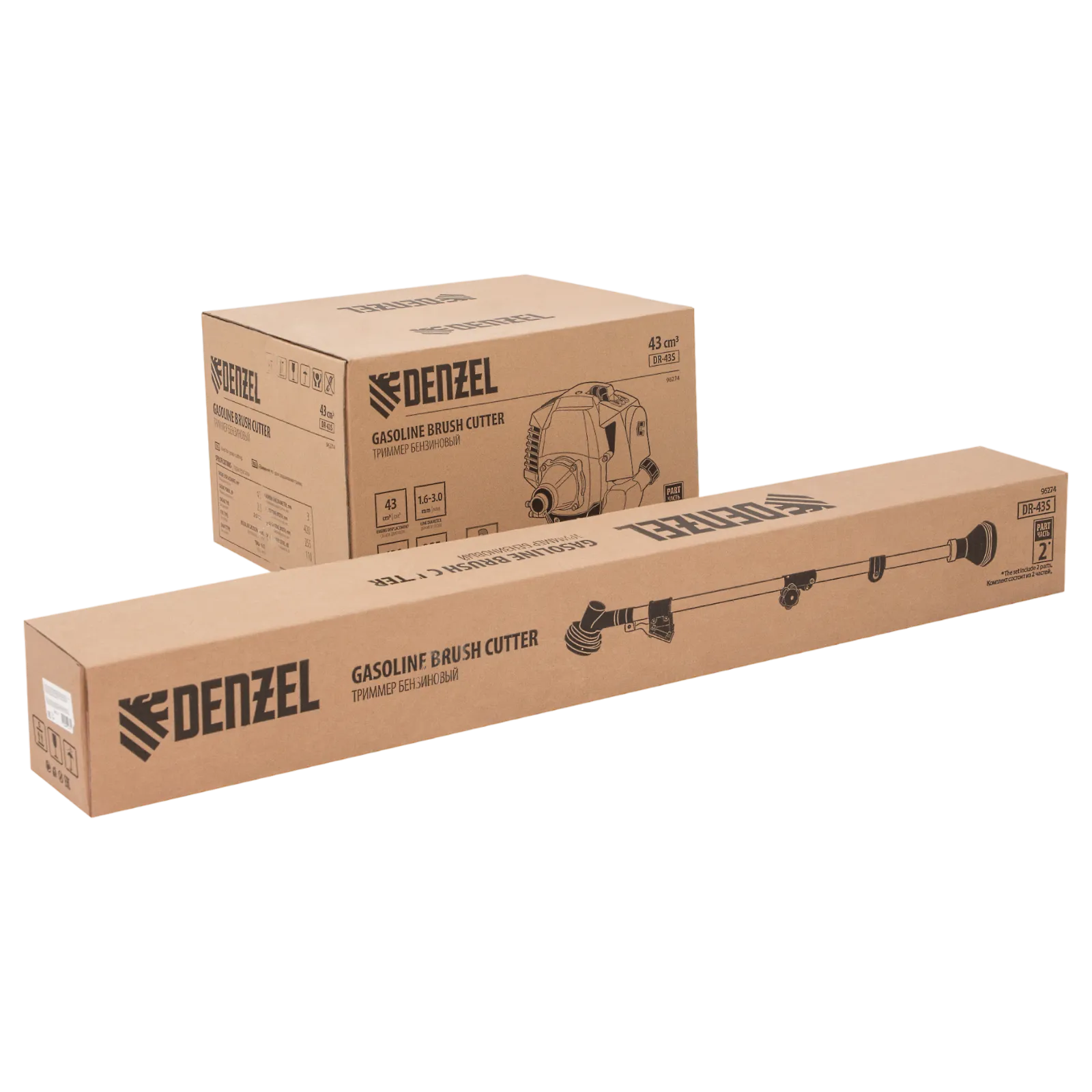 Бензиновый триммер Denzel DR-43S 96274 с двигателем объемом 43 см3 и разъемной штангой, состоит из 2 частей. Используется для ухода за газоном, скашивания травы различных типов, в том числе с жесткими стеблями (полынь, крапива, лебеда). Триммер эффективен на сложных участках: вдоль стен, в ямках и на возвышенностях, вокруг деревьев. Две режущие насадки — трехлопастный нож и катушка с леской — вращаются со скоростью 9500 об/мин, обеспечивая ширину скашивания 25,5 и 42 см. ;Эффективную работу инструмента обеспечивает двухтактный двигатель мощностью 2,5 л.с. При этом триммер экономично расходует топливо, поэтому часто заправлять его не придется.