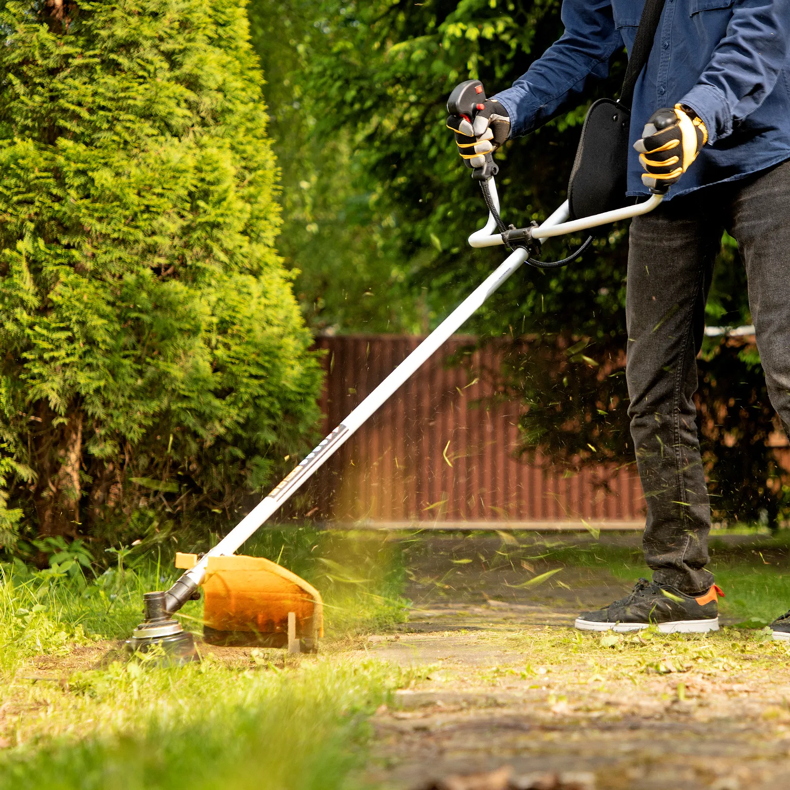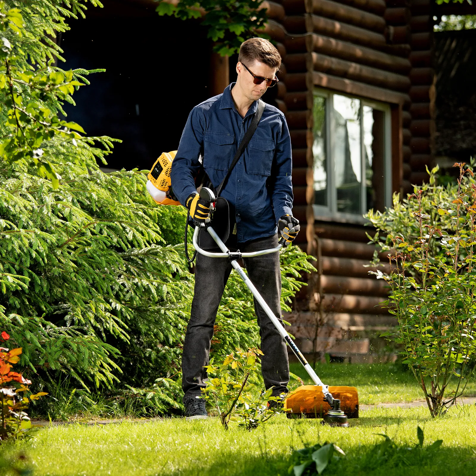 - Небольшой вес 7,6 кг — триммером легко маневрировать даже на сложных участках.