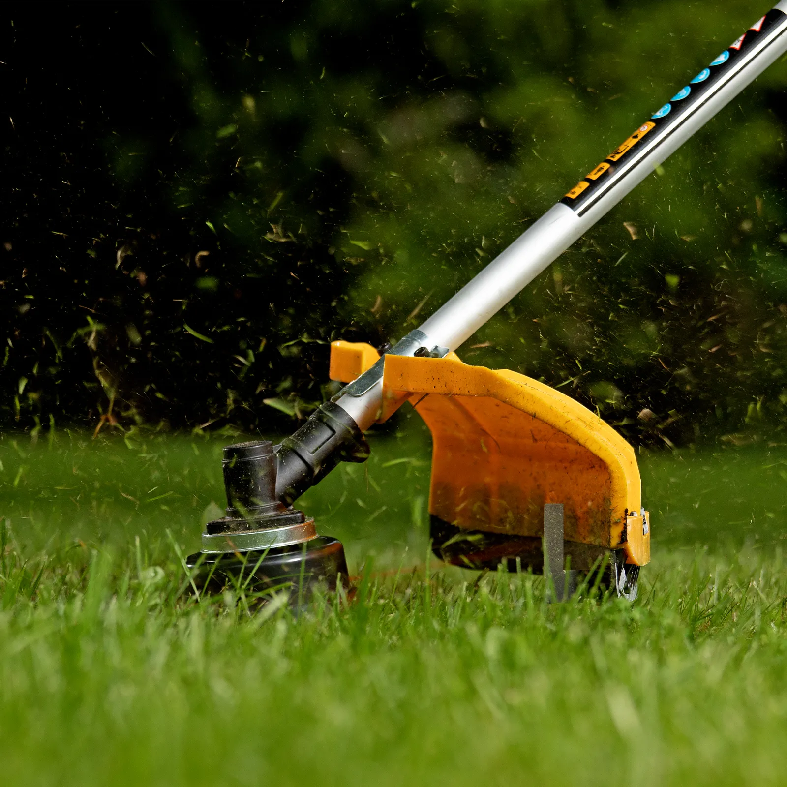 - Ограничительный нож — лезвие на пластиковом кожухе автоматически обрезает лишнюю леску, что обеспечивает защиту двигателя от повышенной нагрузки и перегрева.