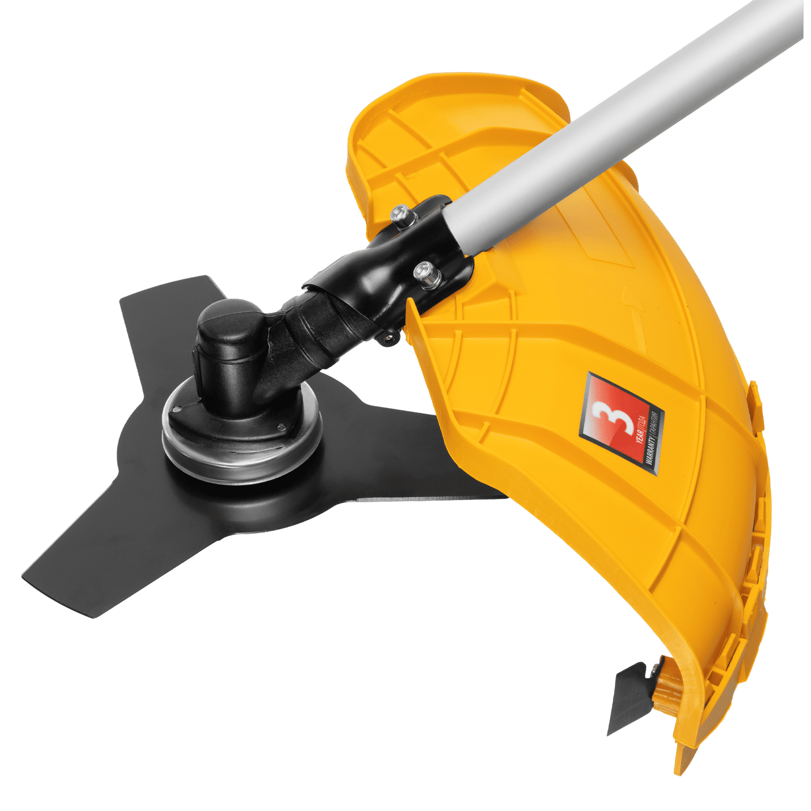 - Безопасная эксплуатация — прочный кожух, закрывающий оснастку, защищает пользователя от летящей травы, грязи и мелких камней.