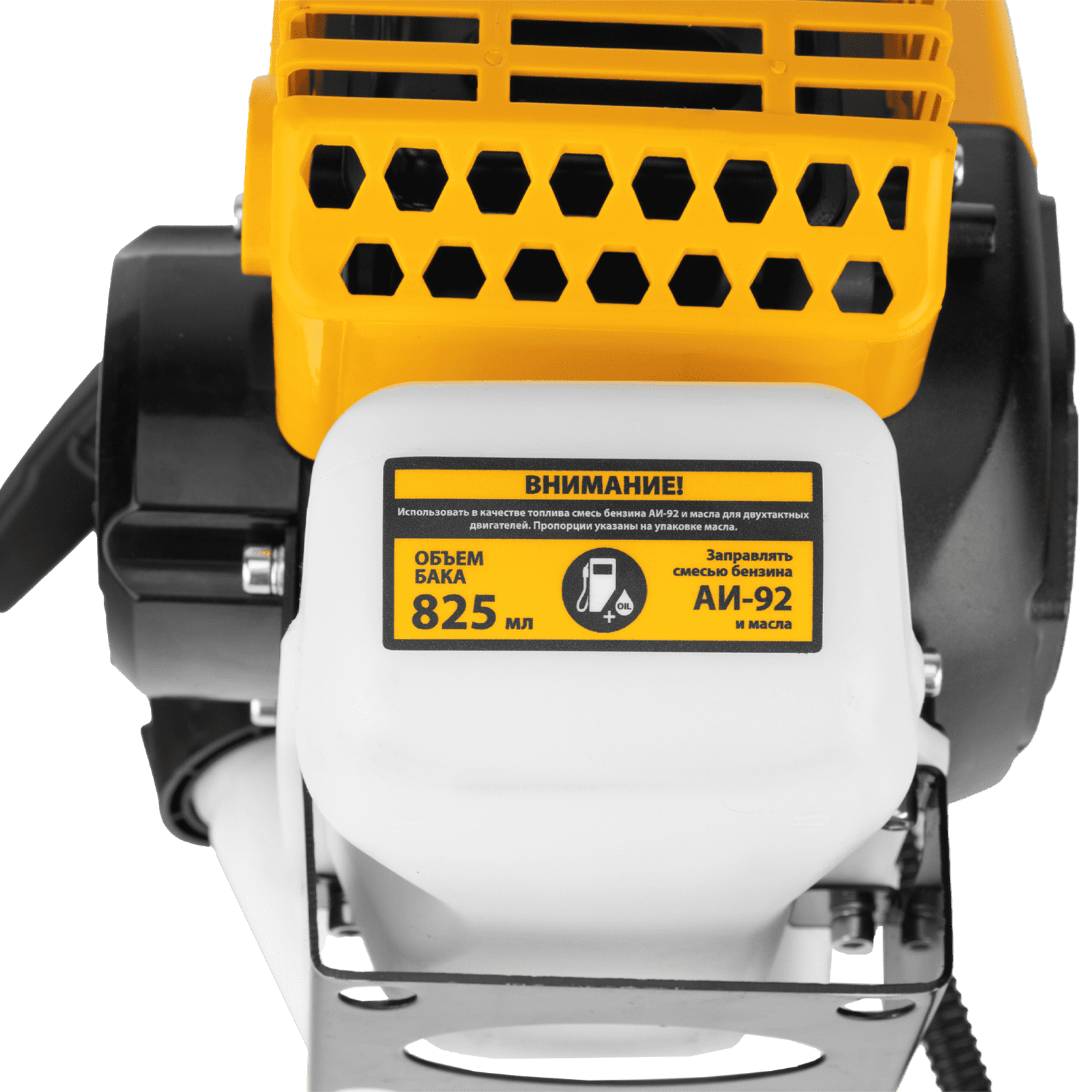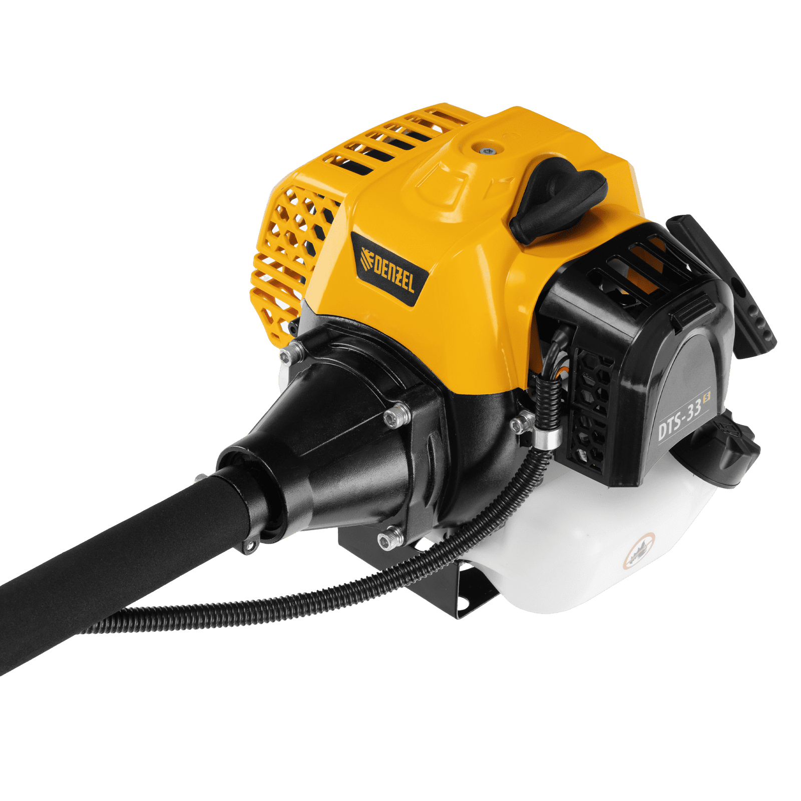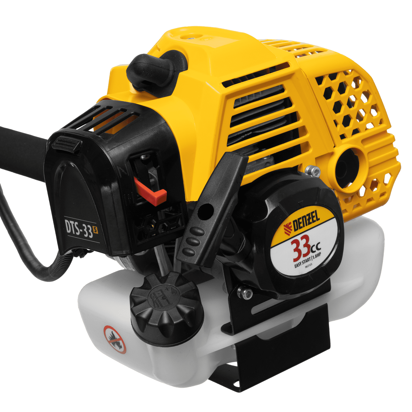 Бензиновый триммер Denzel DTS-33S 962125 с двигателем объемом 33 куб. см и разъемной штангой (состоит из 2 частей), используется для скашивания травы различных типов, в том числе с жесткими стеблями (полыни, крапивы, лебеды). Комплектуется двумя режущими оснастками — усиленной катушкой с леской и трехлопастным стальным ножом. Ширина скашивания леской составляет 42 см, а ножом — 25,5 см.;Двухтактный бензиновый двигатель мощностью 1,8 л.с. обеспечивает эффективное решение поставленных задач и полную автономность. Работать можно даже в самых отдаленных участках сада, не заботясь о наличии сети электропитания.