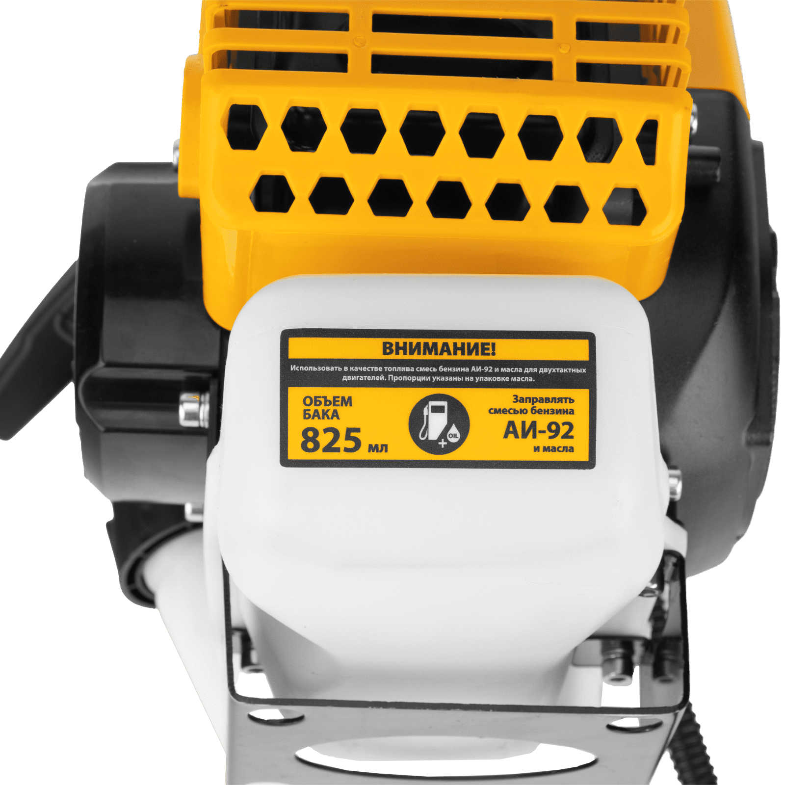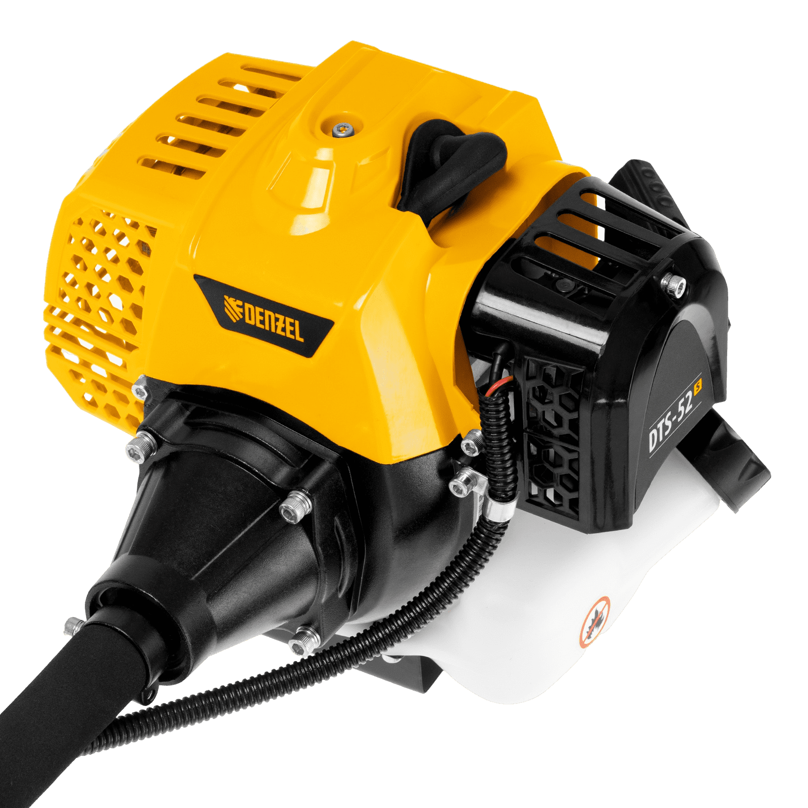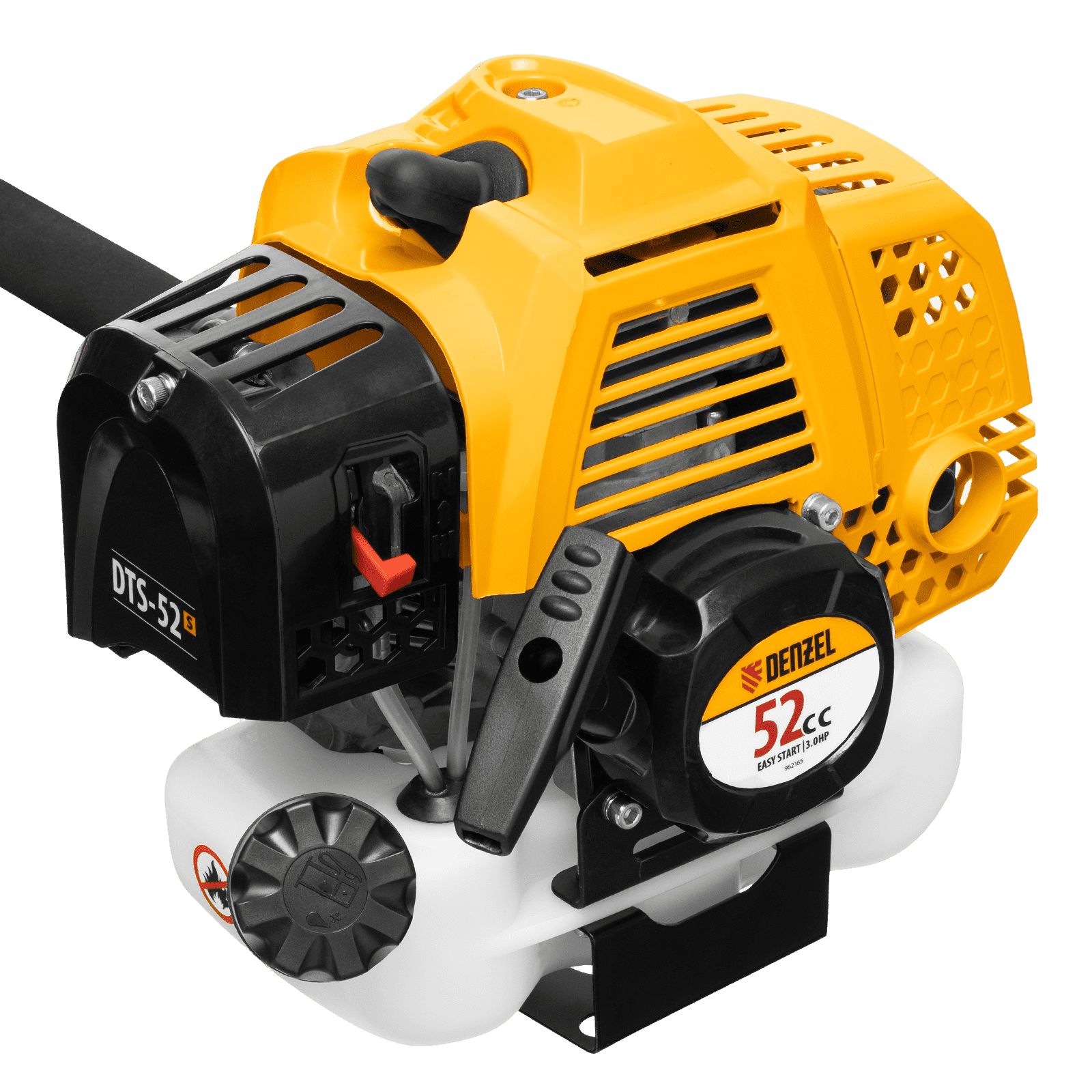 Бензиновый триммер Denzel DTS-52S 962165 с двигателем объемом 52 куб. см и разъемной штангой (состоит из 2 частей), используется для скашивания травы различных типов, в том числе с жесткими стеблями (полыни, крапивы, лебеды). Комплектуется двумя режущими оснастками — усиленной катушкой с леской и трехлопастным стальным ножом. Ширина скашивания леской составляет 42 см, а ножом — 25,5 см.;Двухтактный бензиновый двигатель мощностью 3 л.с. обеспечивает эффективное решение поставленных задач и полную автономность. Работать можно даже в самых отдаленных участках сада, не заботясь о наличии сети электропитания.