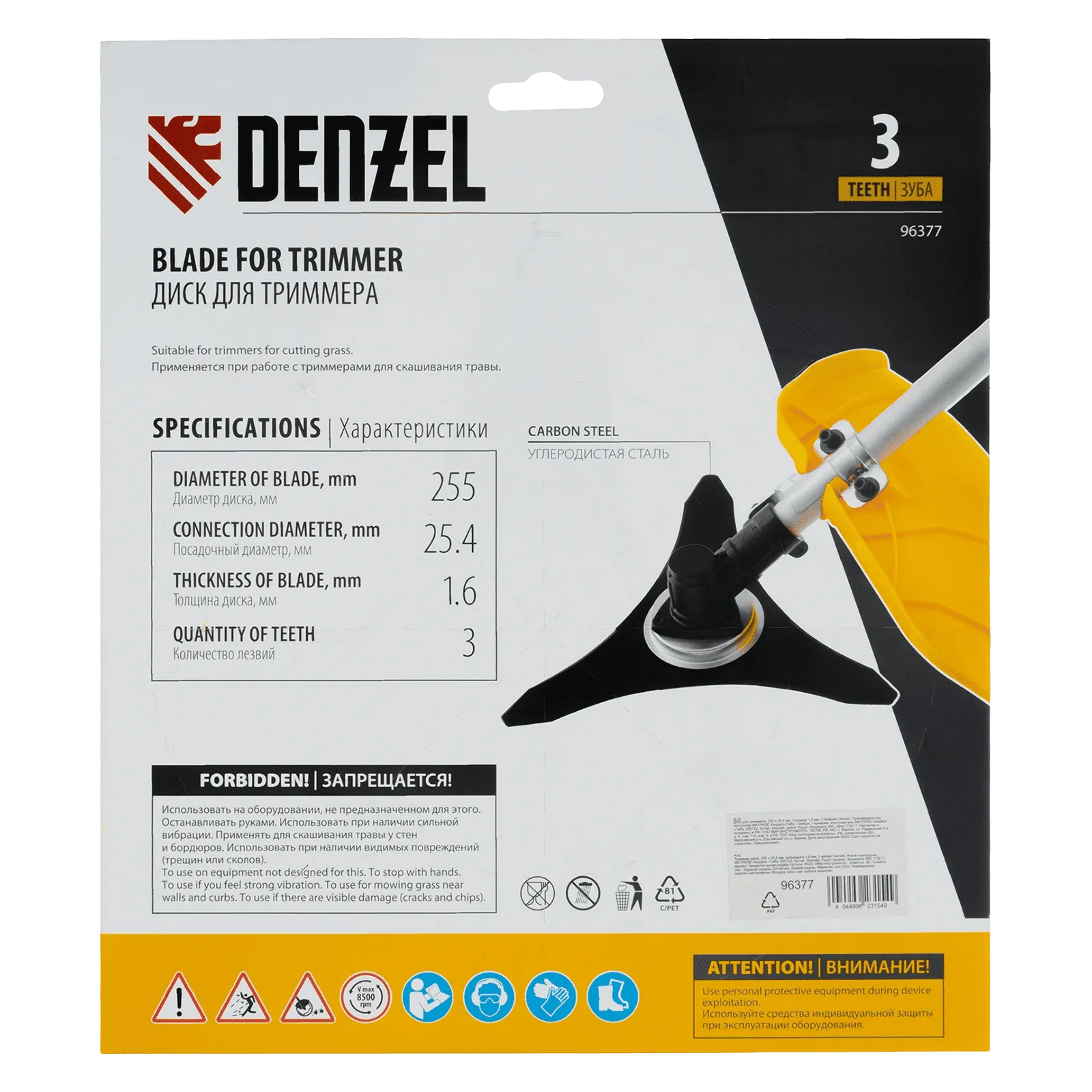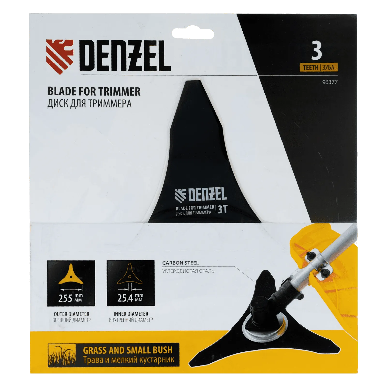 Диск для триммера Denzel 96377 с 3 лезвиями, толщиной 1,6 мм, с внешним диаметром 250 мм и посадочным — 25,4 мм, используется для скашивания травы и мелкого кустарника. Устанавливается на бензокосу или электротриммер с верхним расположением двигателя и прямой штангой. Позволяет быстро очистить от сорняков и крупностеблевой растительности территорию большой площади. Диск пригодится владельцам загородных участков.