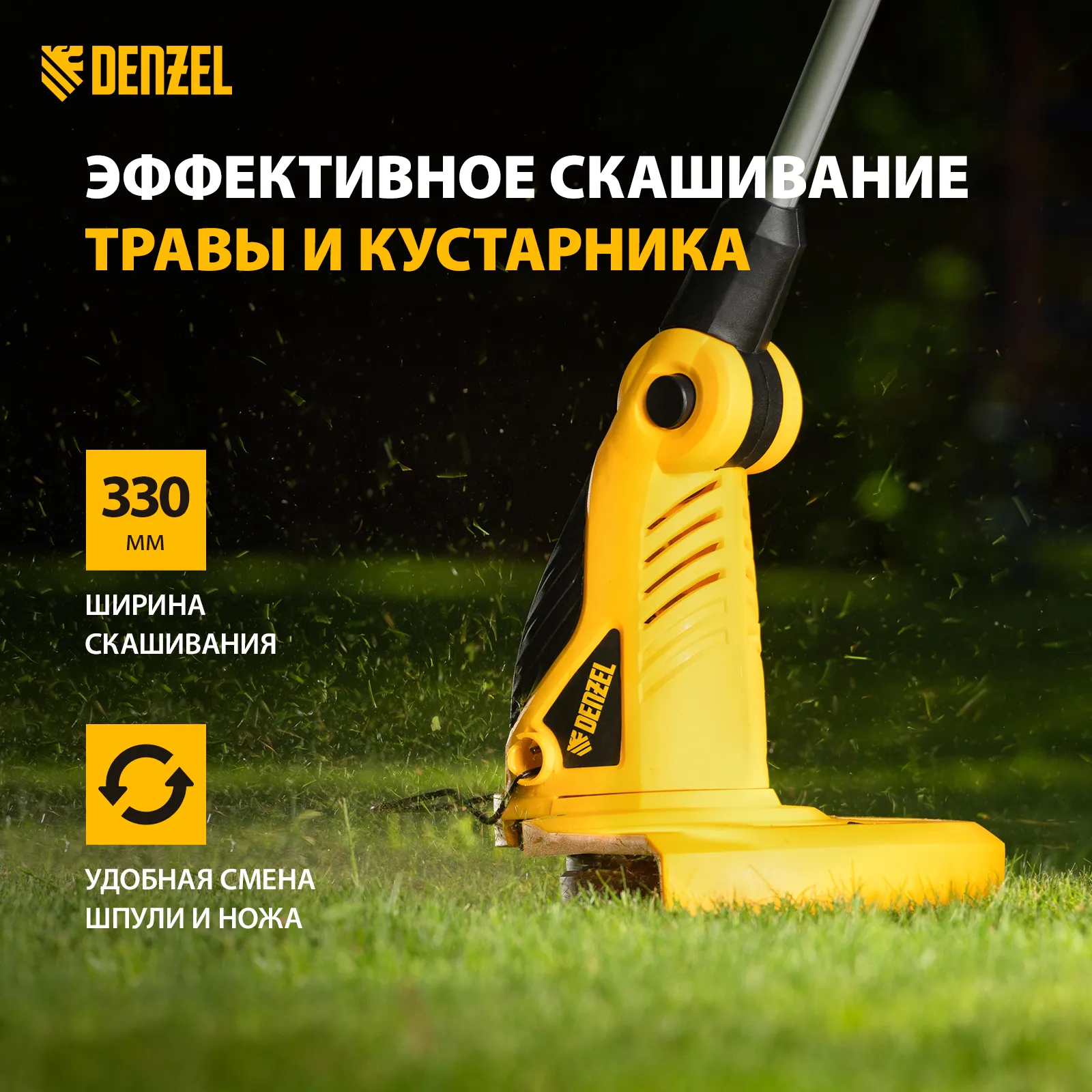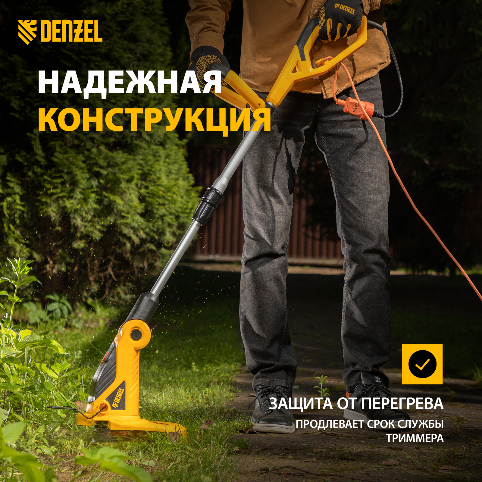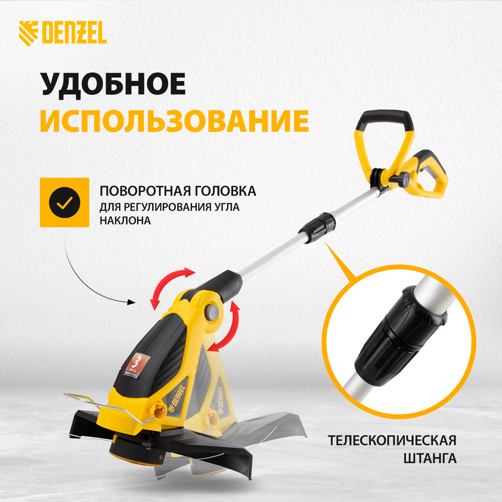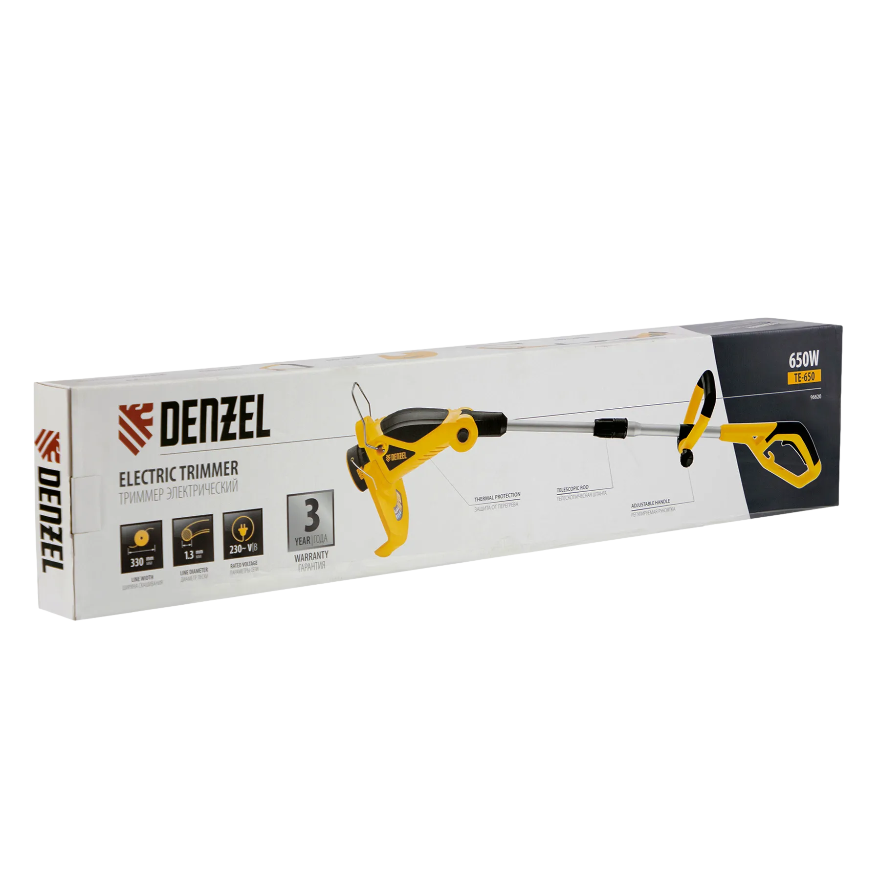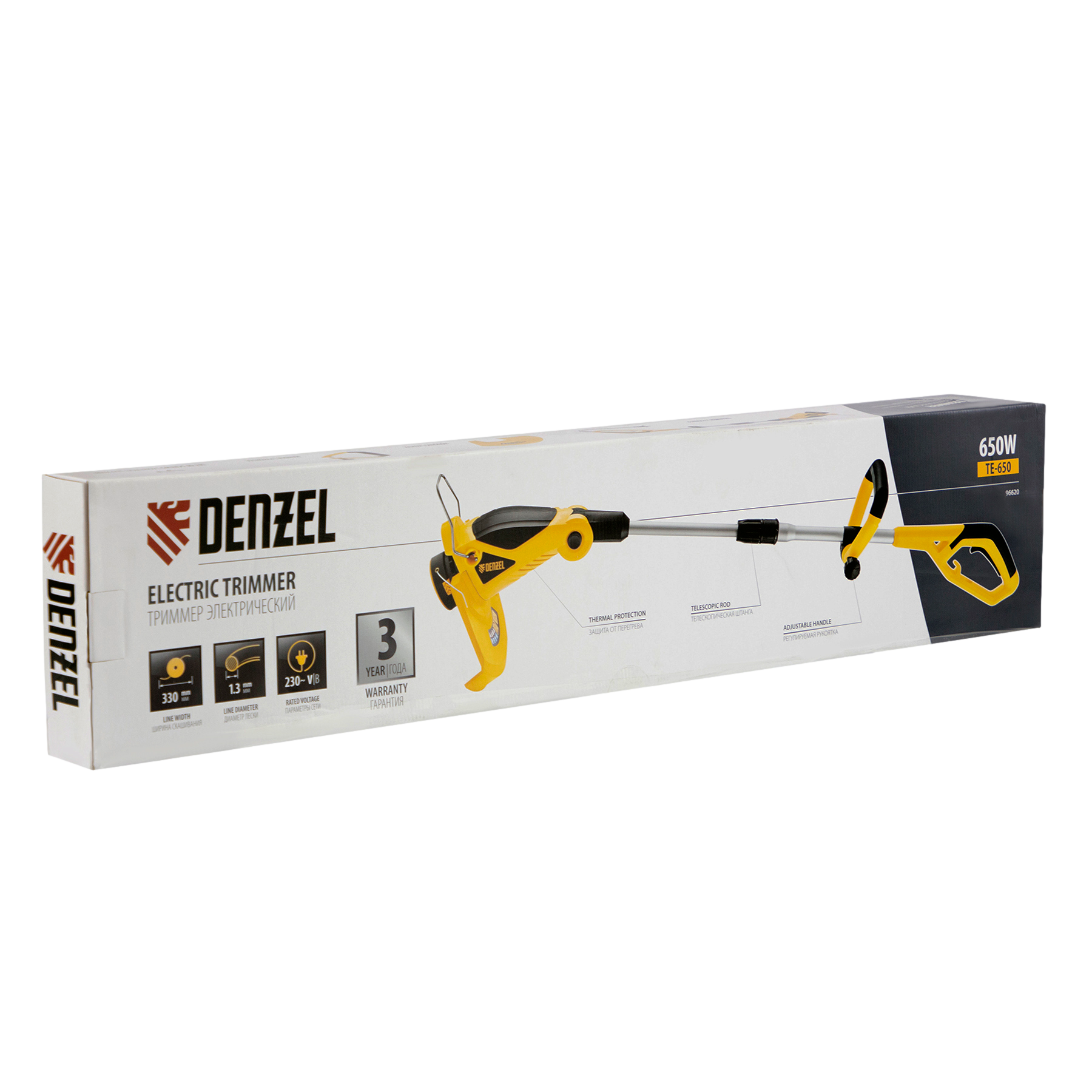 Электрический триммер Denzel TE-650 96620 мощностью 650 Вт обеспечивает вращение оснастки со скоростью 9000 об/мин и ширину скашивания 330 мм. Идеально подходит для скашивания газонной травы на небольших участках и в местах, недоступных для колесных газонокосилок. Благодаря нижнему расположению двигателя триммер хорошо сбалансирован, им просто и комфортно работать. Он будет полезен владельцам дачных участков. ;Электротриммер не требует специальной подготовки и сложного технического обслуживания: не нужно смешивать с маслом бензин, сливать топливо, прогревать двигатель.