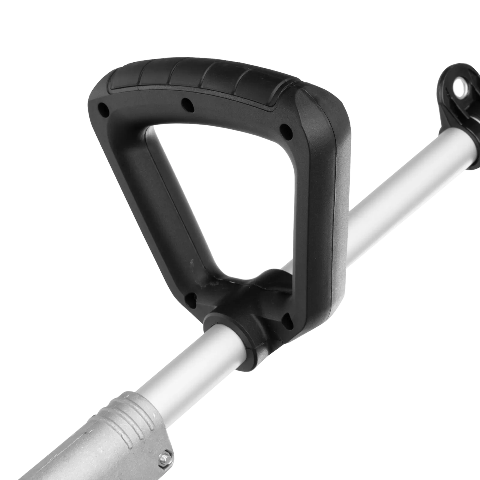 - Удобное управление — благодаря плечевому ремню, регулируемому кольцу крепления и D-образной ручке триммер легко удерживать и направлять.