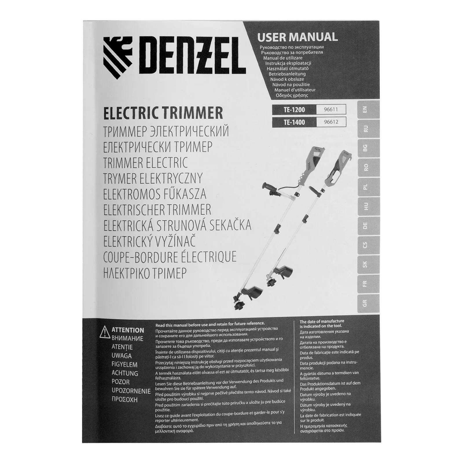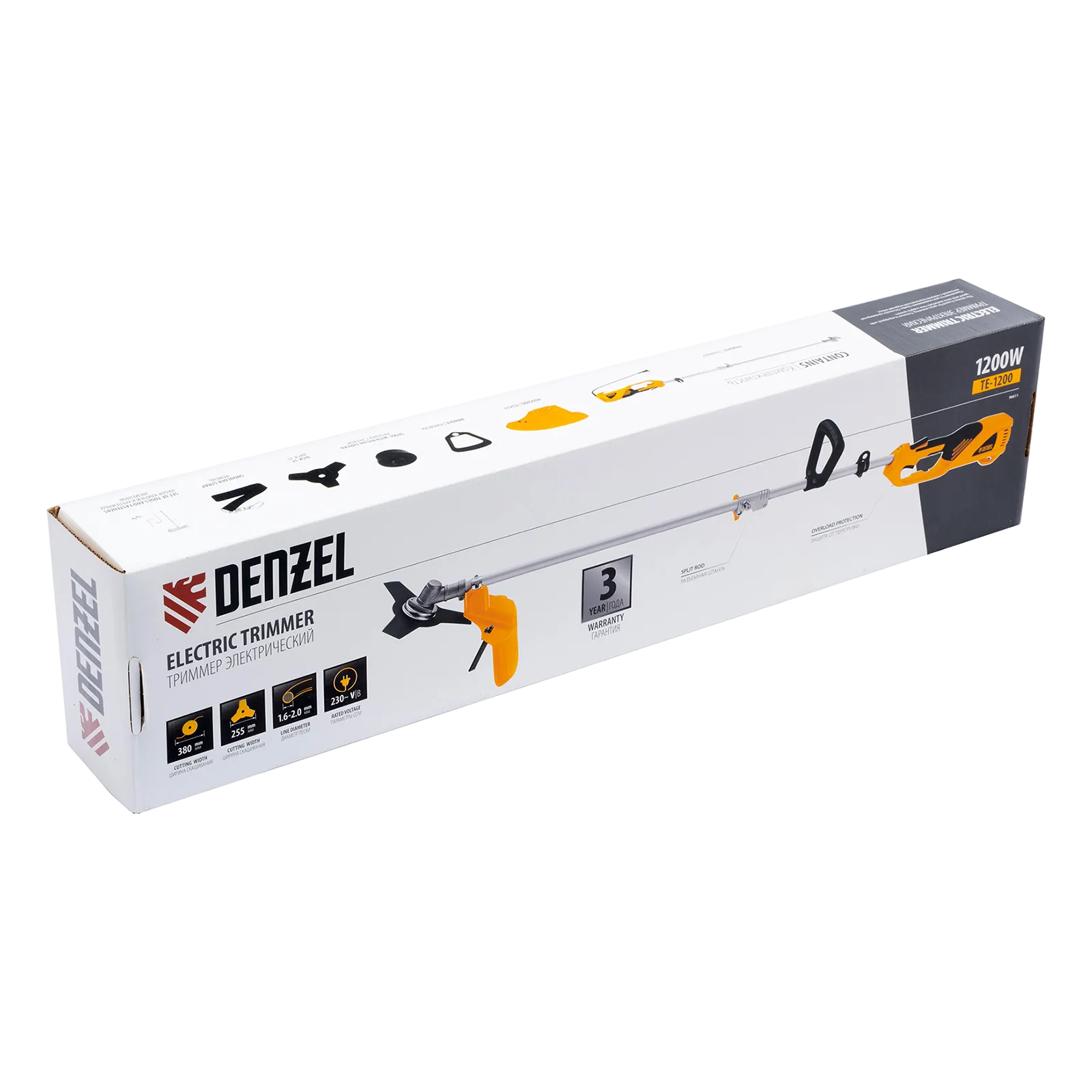 Триммер Denzel TE-1200 96611 мощностью 1200 Вт, с разборной штангой, комплектуется катушкой с леской и 3-лопастным диском, ширина скашивания составляет 380 мм и 255 мм соответственно. Идеален для скашивания травы различных типов, в том числе с жесткими стеблями (полыни, крапивы, лебеды). Благодаря верхнему расположению двигателя может косить мокрую траву.;Двигатель мощностью 1200 Вт обеспечивает вращение оснастки с частотой 7000 об/мин. поэтому уход за участком не займет много времени. Электротриммер прост в обращении — ему не требуется сложное техническое обслуживание, пользоваться им сможет даже новичок.