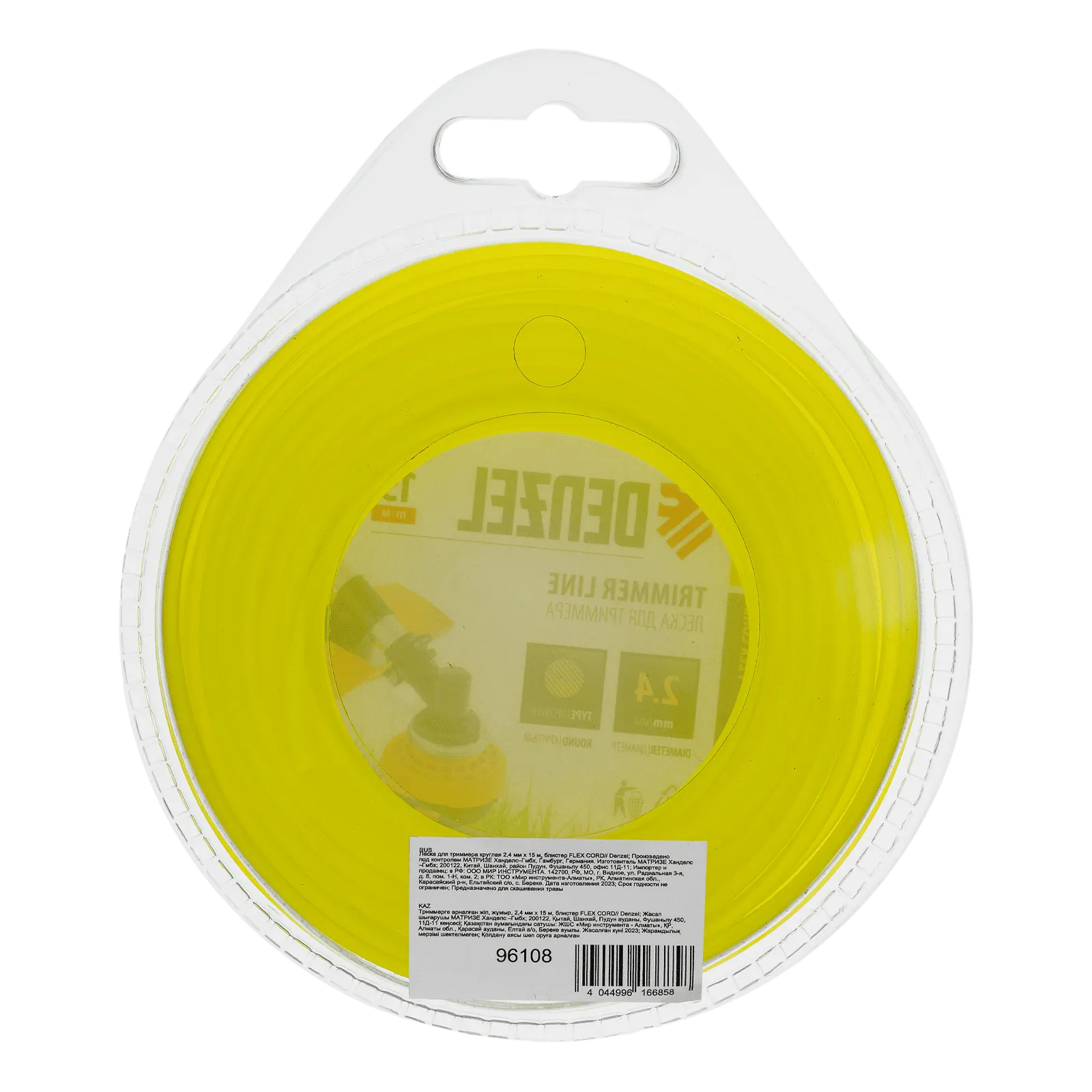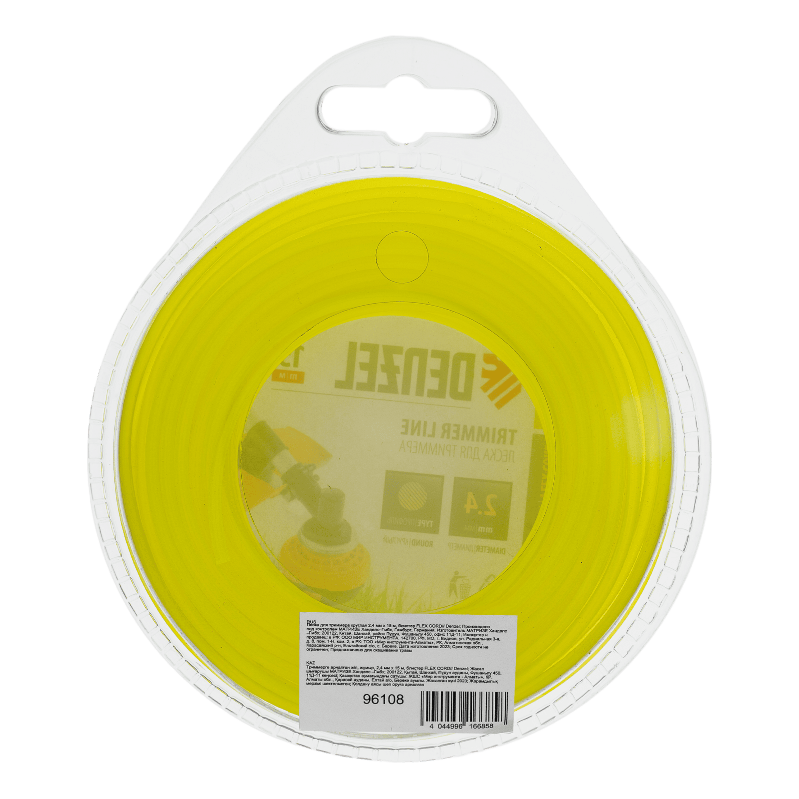 Круглая леска для триммера Denzel FLEX CORD 96108 диаметром 2,4 мм и длиной 15 м поставляется в блистере и предназначена для скашивания густой травы и сорняков с толстыми стеблями. Совместима с бензотриммерами и электротриммерами мощностью 1-1,4 кВт.