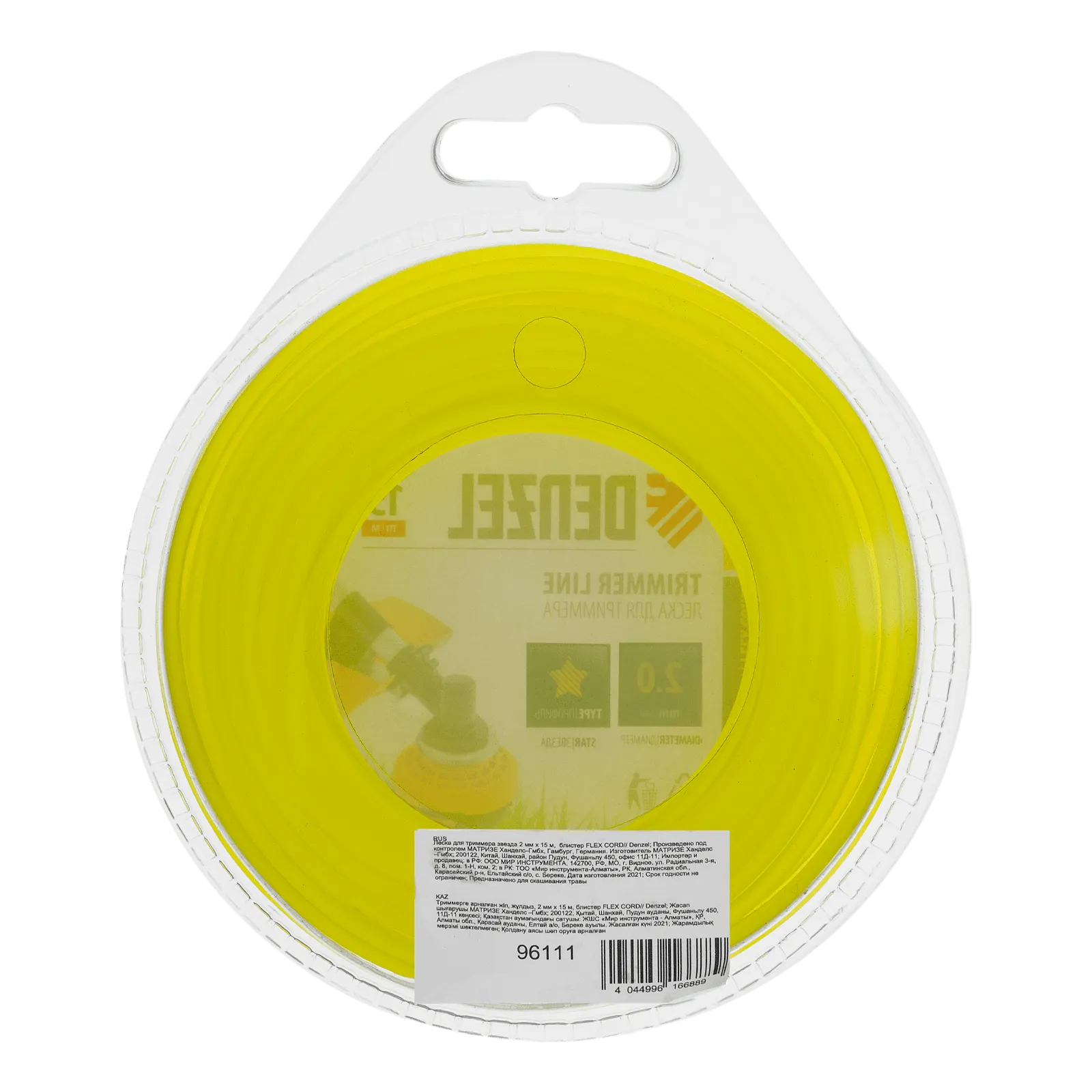 Леска Denzel FLEX CORD 96111 с сечением «звезда», диаметром 2 мм и длиной 15 м, поставляется в блистере и используется для бензиновых и электрических триммеров мощностью от 1000 Вт. Предназначена для стрижки газонной, густой или сухой травы, а также борьбы с сорняками.