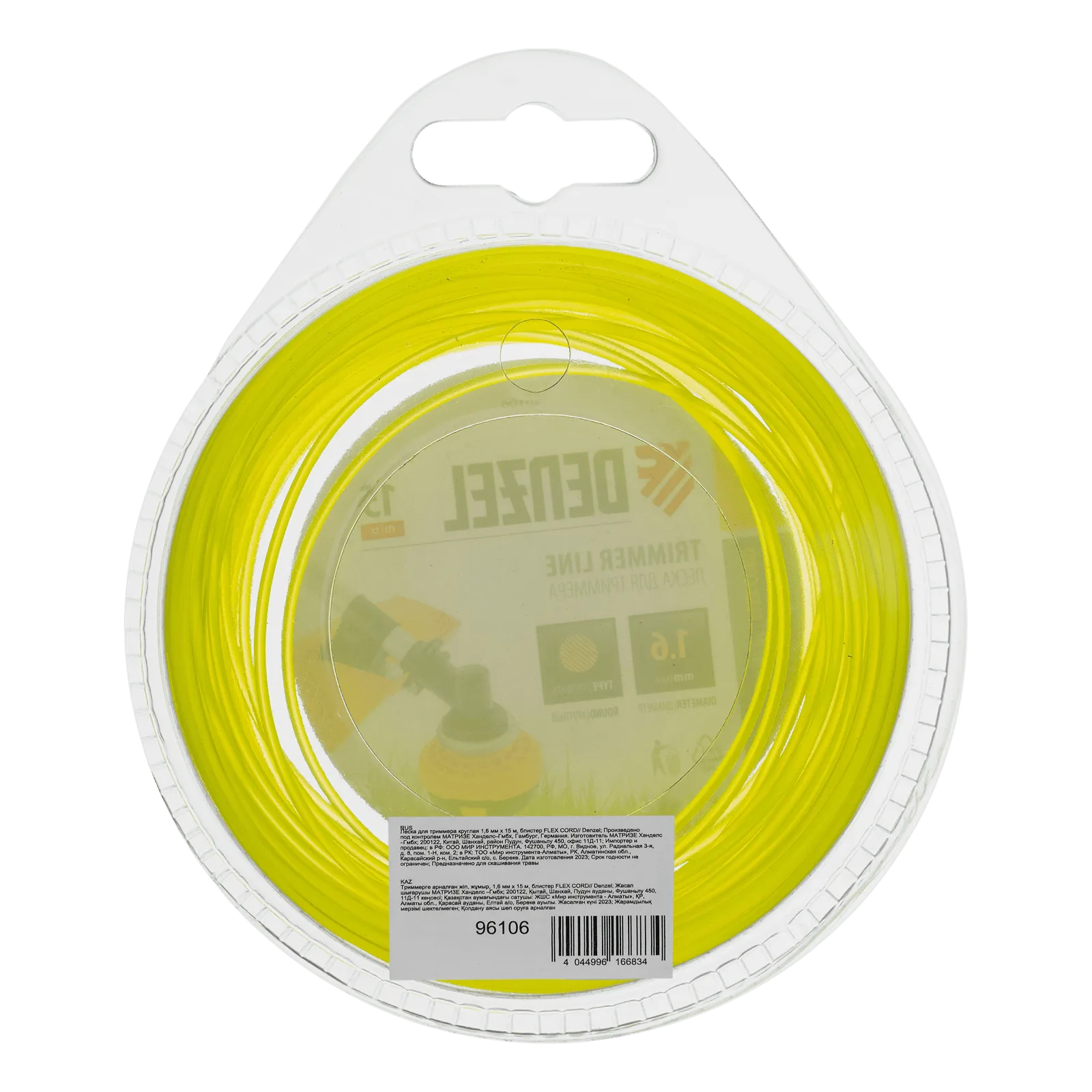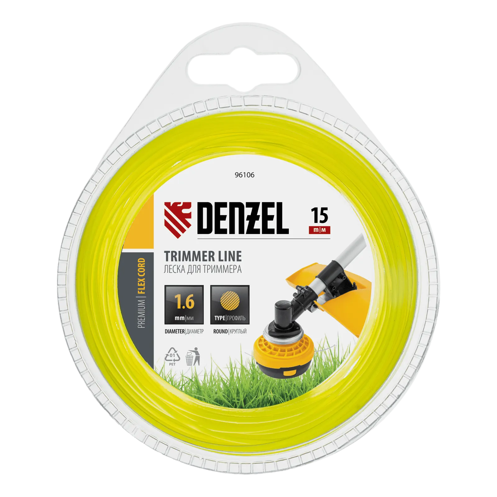 Круглая леска для триммера Denzel FLEX CORD 96106 диаметром 1,6 мм и длиной 15 м поставляется в блистере и предназначена для скашивания газонной или молодой травы. Она используется на электротриммерах малой мощности от 300 до 600 Вт.