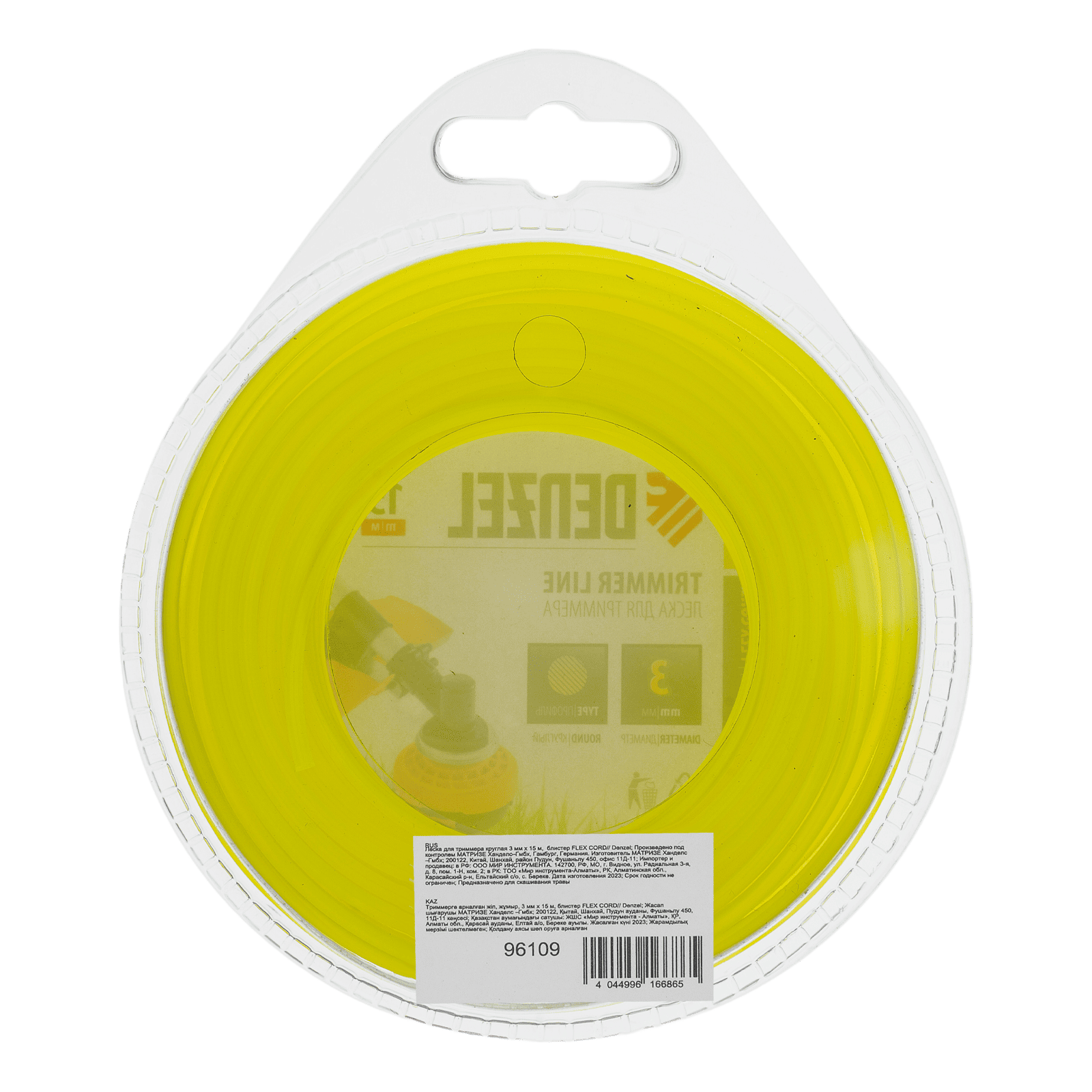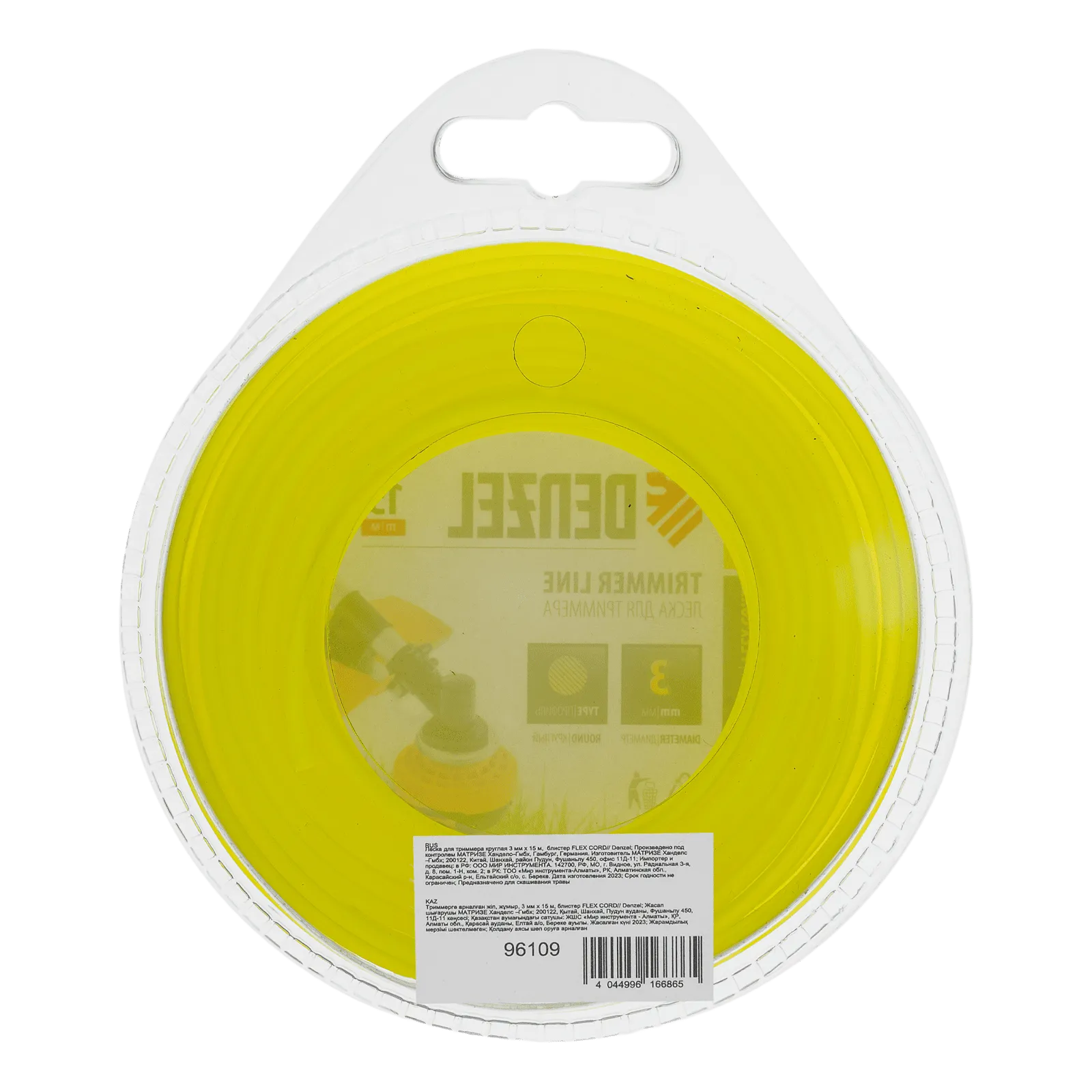 Круглая леска для триммера Denzel FLEX CORD 96109 диаметром 3 мм и длиной 15 м поставляется в блистере и предназначена для установки на бензокосу. Используется для скашивания густой травы, сорняков с толстыми стеблями и молодых побегов кустарника на участках большой площади.