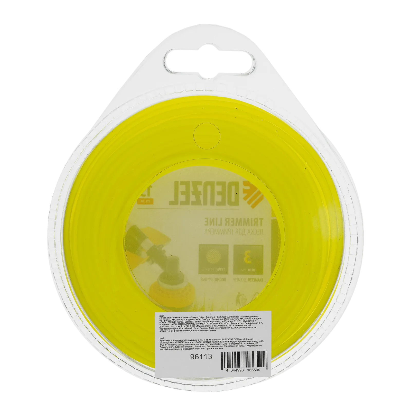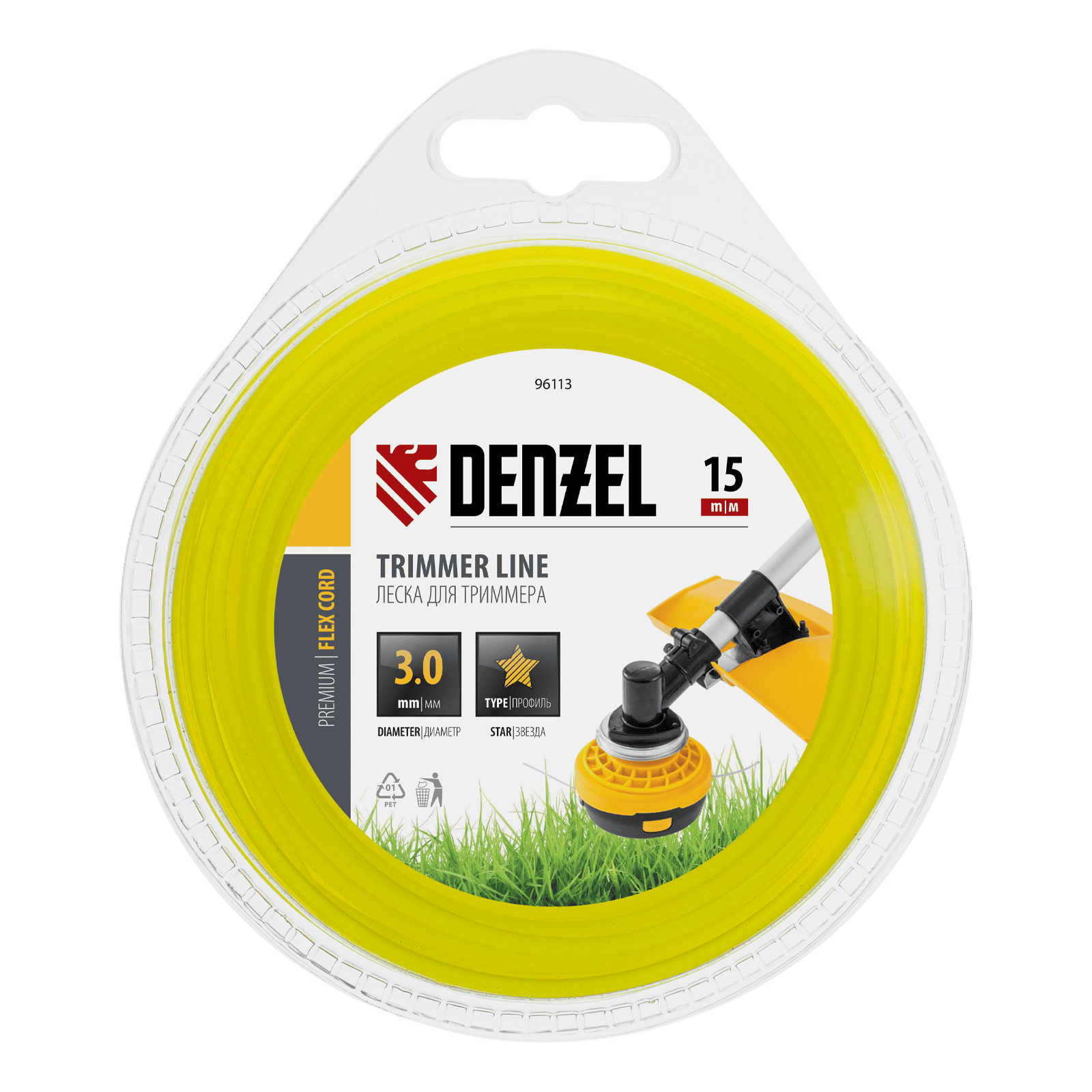 Леска Denzel FLEX CORD 96113 с сечением «звезда», диаметром 3 мм и длиной 15 м, поставляется в блистере и используется для бензиновых триммеров. Предназначена для стрижки жесткой, высокой и густой травы, а также борьбы с сорняками с толстыми стеблями, бурьяном и лопухами.
