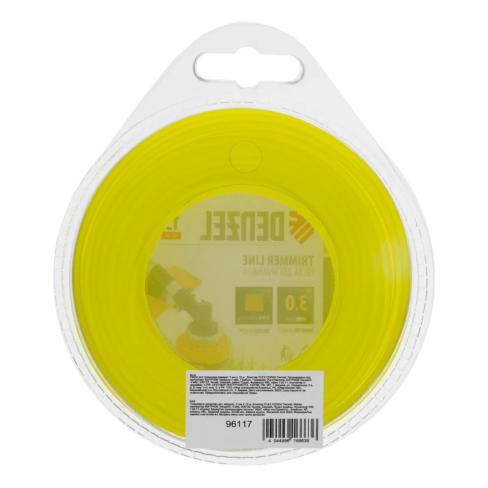 Леска для триммера Denzel FLEX CORD 96117 с квадратным сечением, диаметром 3 мм и длиной 15 м, поставляется в блистере и рассчитана на скашивание сухой и жесткой травы, сорняков, бурьяна и лопухов. Заправляется в катушку бензотриммера.