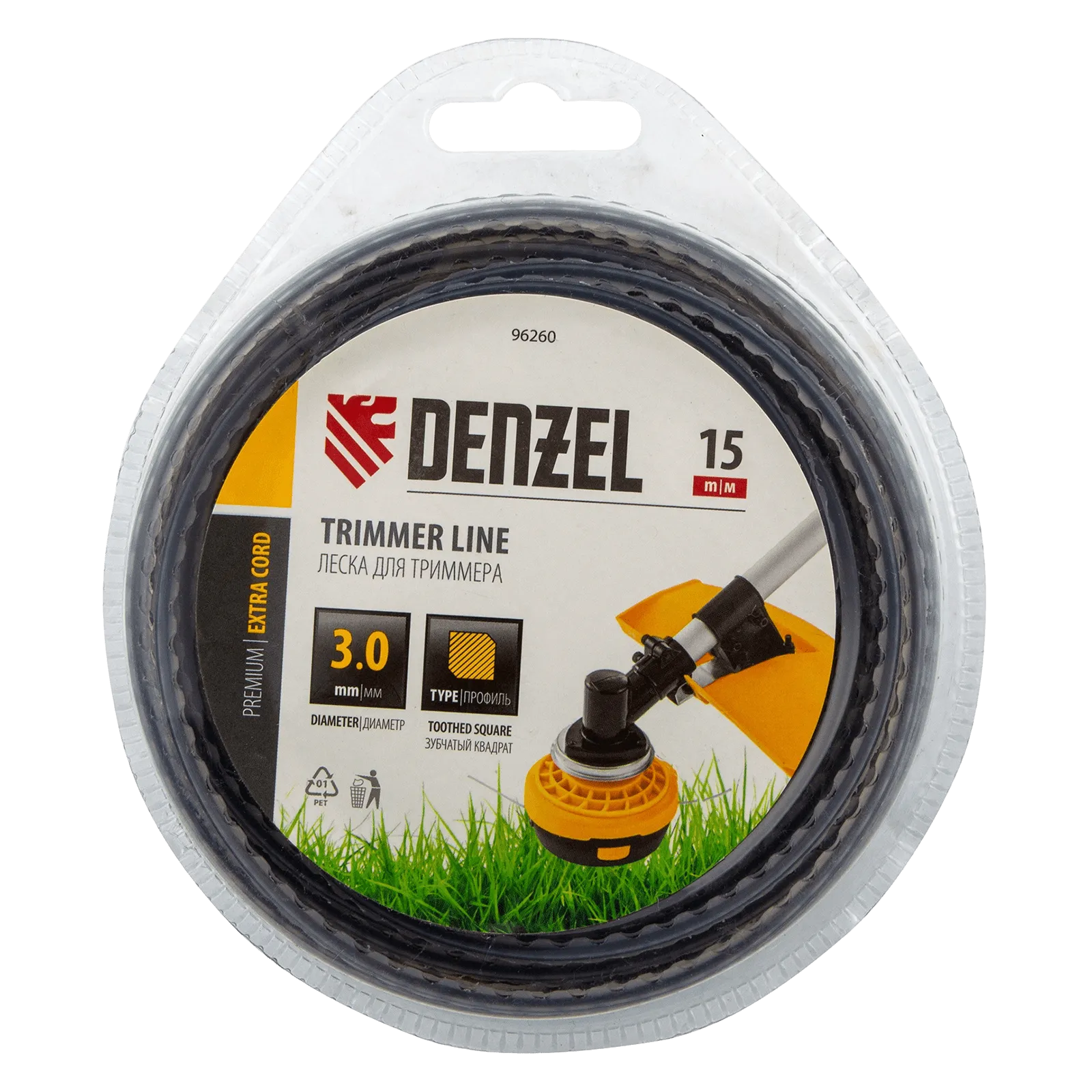 Двухкомпонентная леска Denzel EXTRA CORD 96260 диаметром 3,0 мм и длиной 15 м поставляется в блистере. Предназначена к использованию в бензиновых триммерах с объемом двигателя 25-52 см3. Применяется для скашивания газонной травы, пригодится владельцам дачных участков.