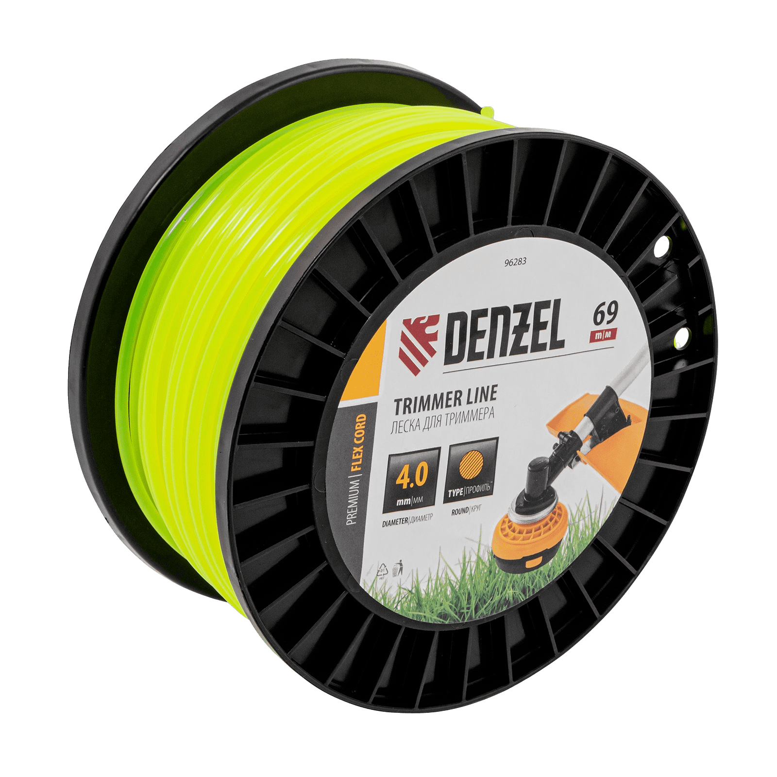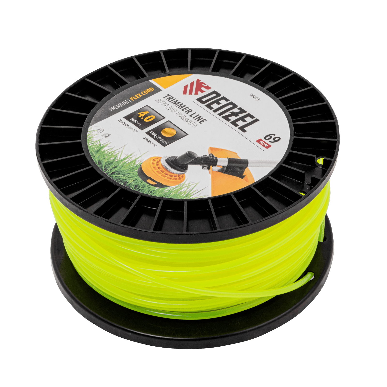 Леска для триммера Denzel FLEX CORD 96283 круглого сечения, диаметром 4,0 мм и длиной 69 м, на DIN-катушке, предназначена для скашивания как мягкой, молодой травы, так и густой растительности, бурьяна. Подходит для бензиновых триммеров с объемом двигателя более 25-52 см3.