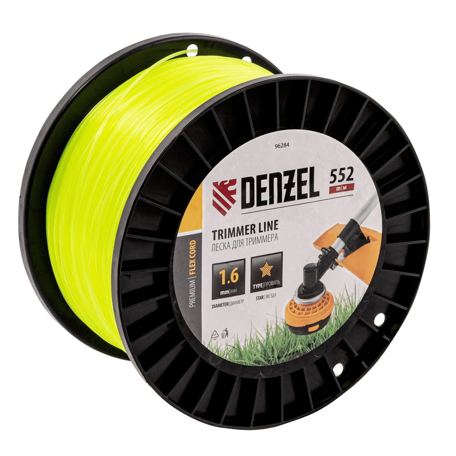 Леска для триммера Denzel FLEX CORD 96284 с сечением «звезда», диаметром 1,6 мм и длиной 552 м, на DIN-катушке, предназначена для скашивания газонной травы. Эффективна даже на замусоренной территории. Заправляется в катушку электрических триммеров мощностью от 0,5 до 1,2 кВт.