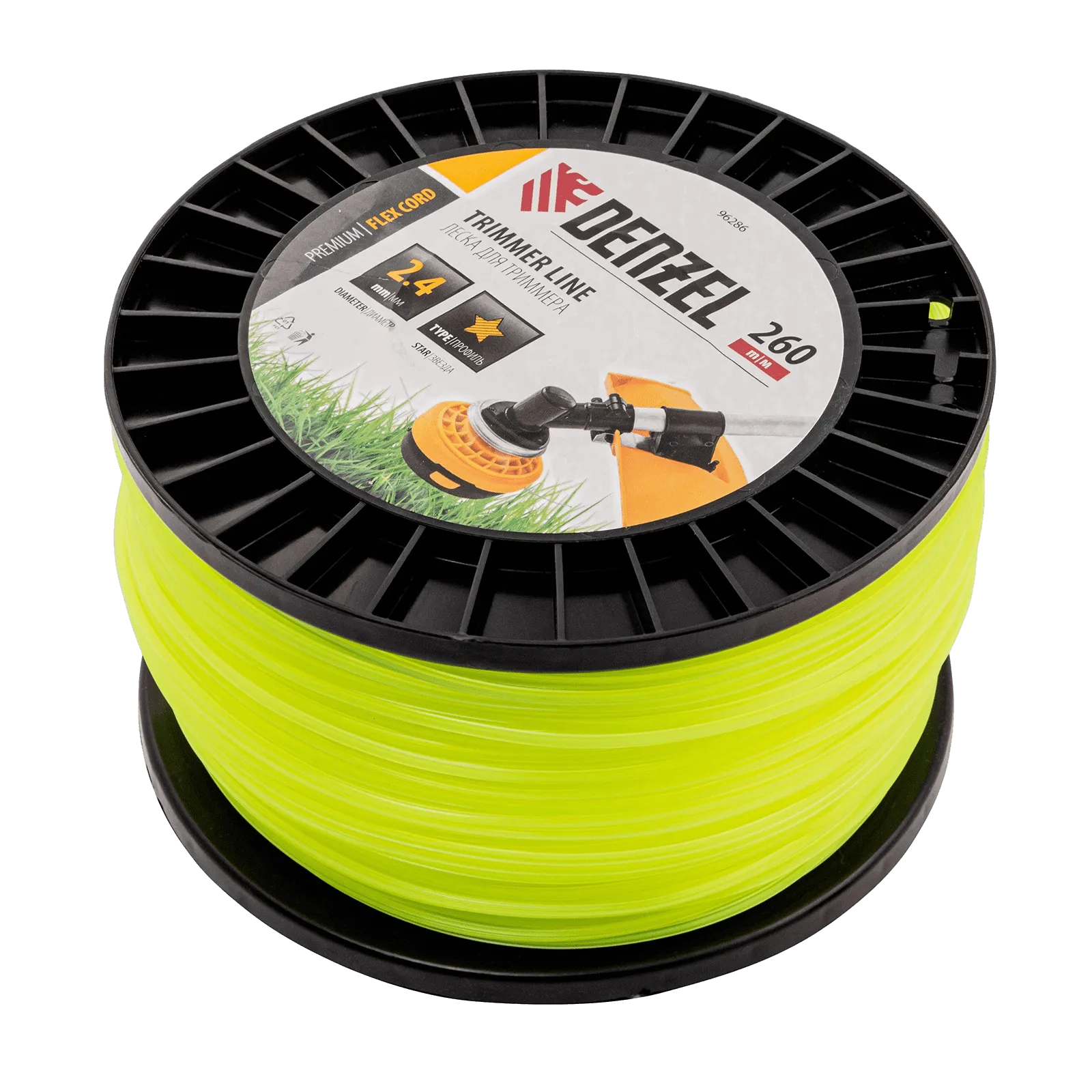 Леска для триммера Denzel FLEX CORD 96286 с сечением «звезда», диаметром 2,4 мм и длиной 260 м, на DIN-катушке, предназначена для скашивания газонной травы, также справляется с крупностеблевой растительностью. Эффективна даже на замусоренной территории. Заправляется в катушку бензотриммеров с объемом двигателя 25-52 см3 и электротриммеров мощностью от 1 до 1,5 кВт.