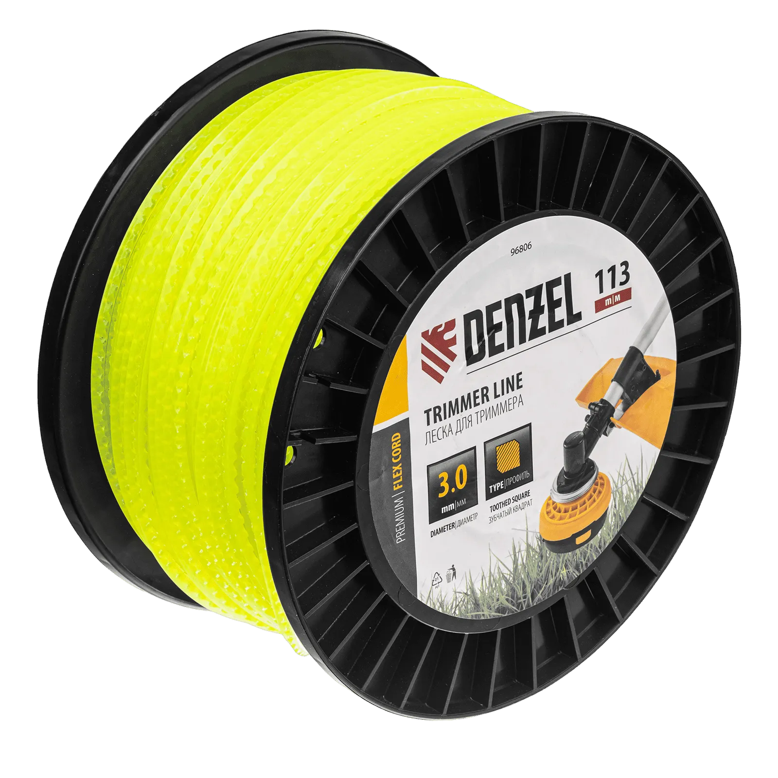 Леска для триммера Denzel FLEX CORD 96806 с сечением «зубчатый квадрат», 3,0 мм х 113 м, на DIN-катушке, предназначена для скашивания газонной травы и сорняков. Подходит к триммерам с объемом двигателя 25-52 см3. Корд пригодится владельцам загородных участков и сотрудникам коммунальных служб.