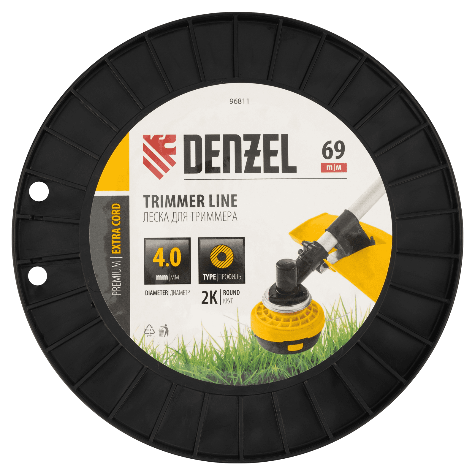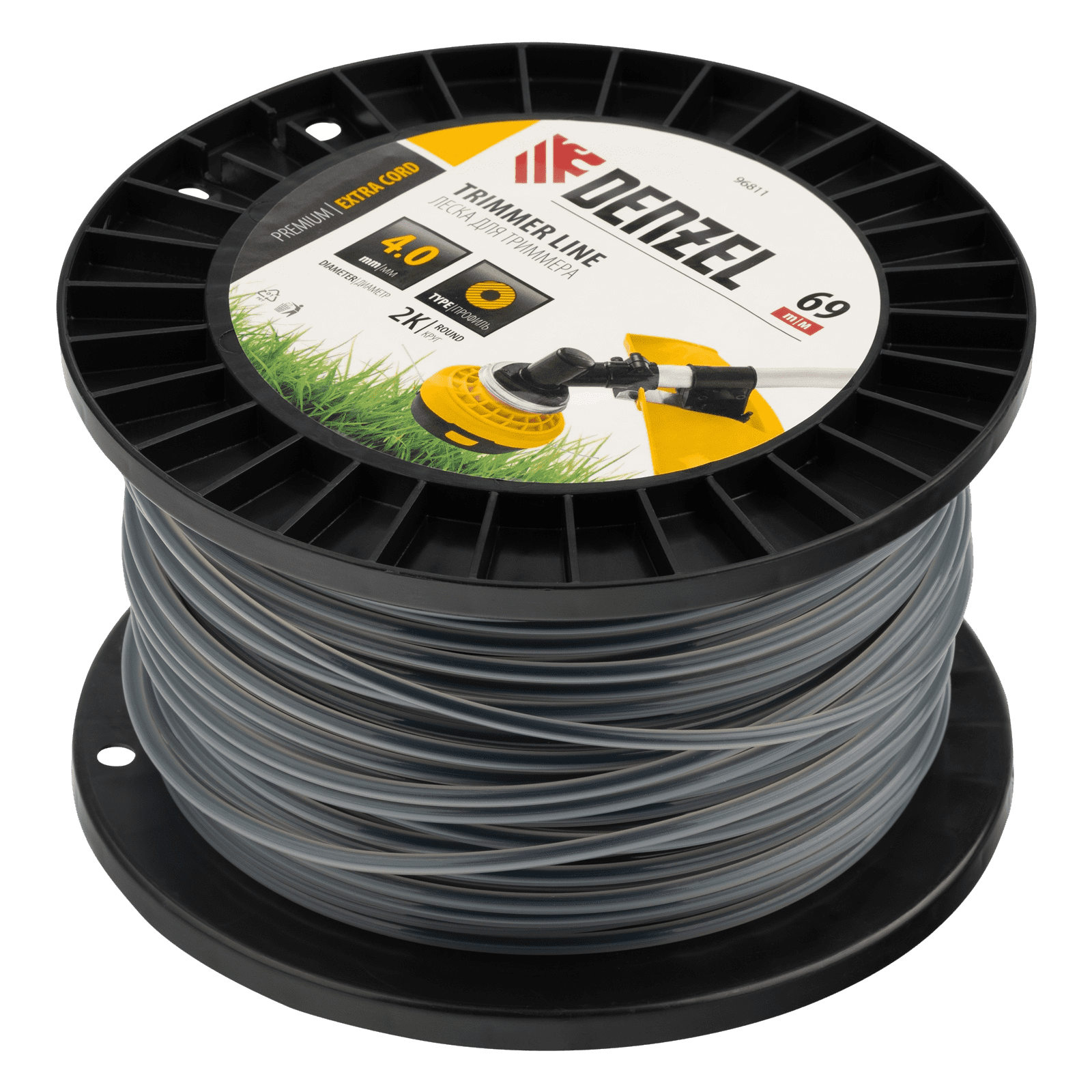 Двухкомпонентная леска для триммера Denzel EXTRA CORD 96810 размером 4,0 мм х 69 м, с круглым сечением, на DIN-катушке, предназначена для работы с мощными бензотриммерами. Используется для скашивания густой травы и растений с толстыми и жесткими стеблями. Будет полезна для ухода за дачным участком или придомовой территорией.