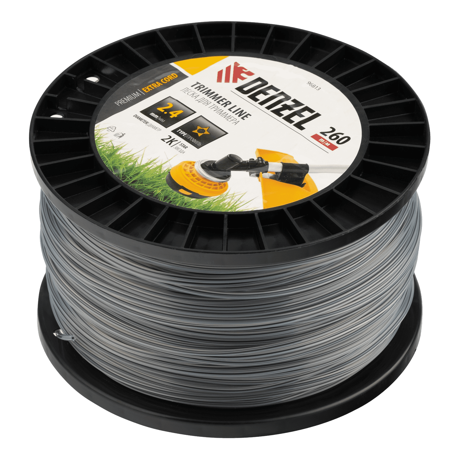 Двухкомпонентная леска для триммера Denzel EXTRA CORD 96813 размером 2,4 х 260 м, с сечением «звезда», поставляется на DIN-катушке и предназначена для скашивания плотных зарослей травы и растений с жесткими стеблями. Заправляется в катушку электротриммеров и бензокос с объемом двигателя 25-52 см3. Обеспечивает агрессивный рез и высокую производительность. Леска пригодится владельцам загородных участков и сотрудникам коммунальных служб.