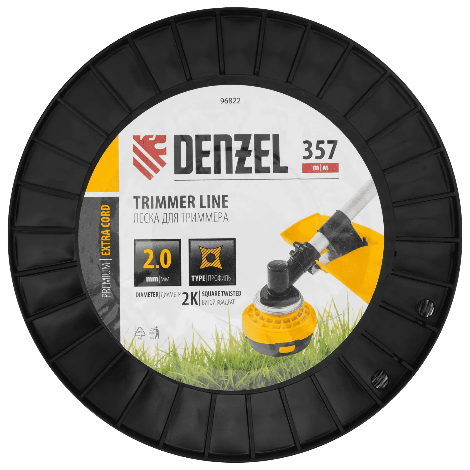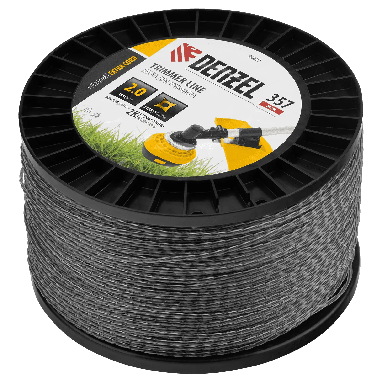 Двухкомпонентная леска для триммера Denzel EXTRA CORD 96822 размером 2,0 мм х 357 м, с сечением «витой квадрат», на DIN-катушке, используется для скашивания густых зарослей травы и сорных растений на дачном участке и придомовой территории. Предназначена для электротриммеров и бензокос с объемом двигателя 25-52 см3. Устойчива к излому, что облегчает ее заправку в катушку. Благодаря острым граням леска успешно справляется с толстыми, жесткими стеблями, позволяя быстро обработать участок большой площади.
