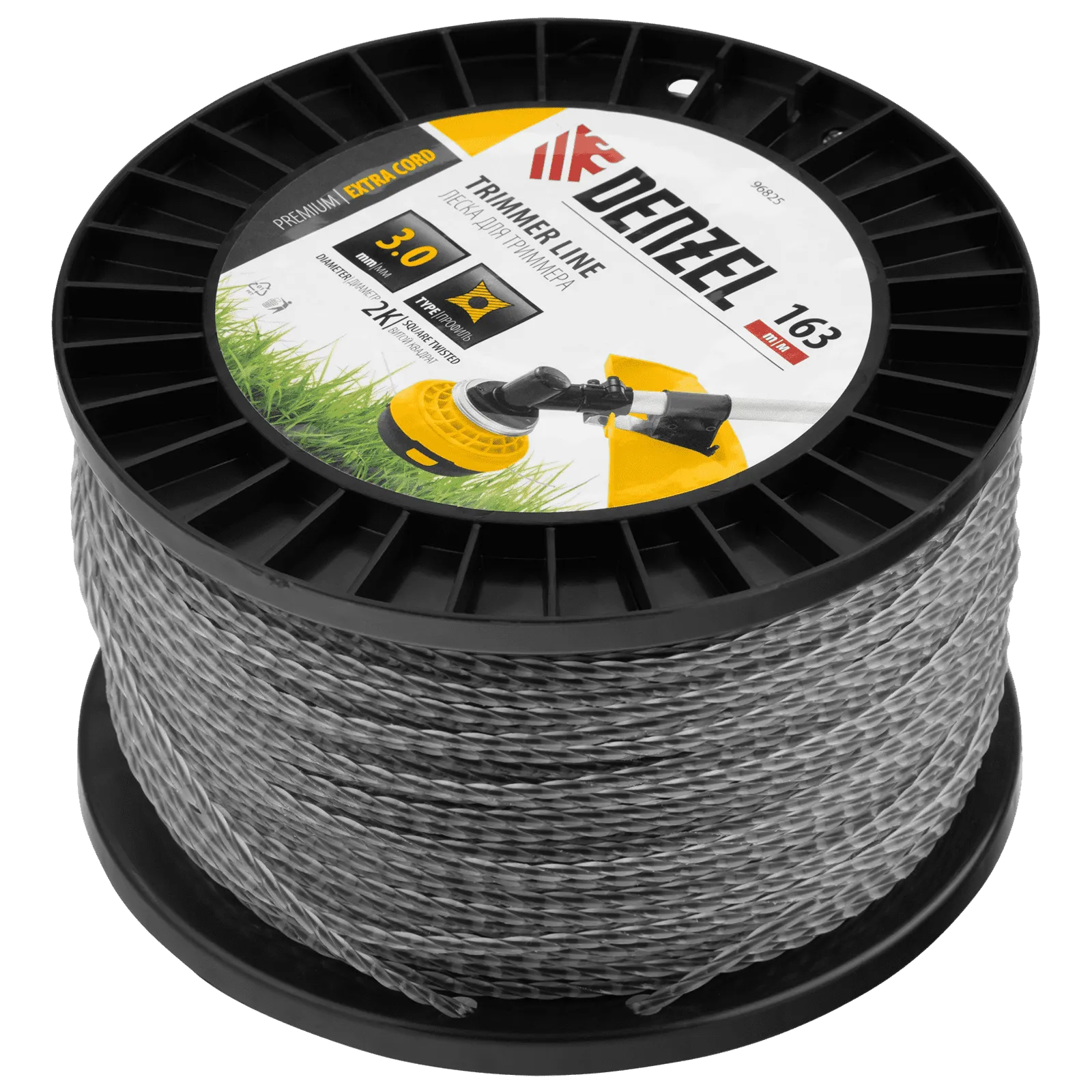 Двухкомпонентная леска для триммера Denzel EXTRA CORD 96825 размером 3,0 мм х 163 м, с сечением «витой квадрат», на DIN-катушке, используется для скашивания густых зарослей травы и сорных растений на дачном участке и придомовой территории. Предназначена для бензотриммеров с объемом двигателя 25-52 см3. Устойчива к излому, что облегчает ее заправку в катушку. Благодаря острым граням леска успешно справляется с толстыми, жесткими стеблями, позволяя быстро обработать участок большой площади.