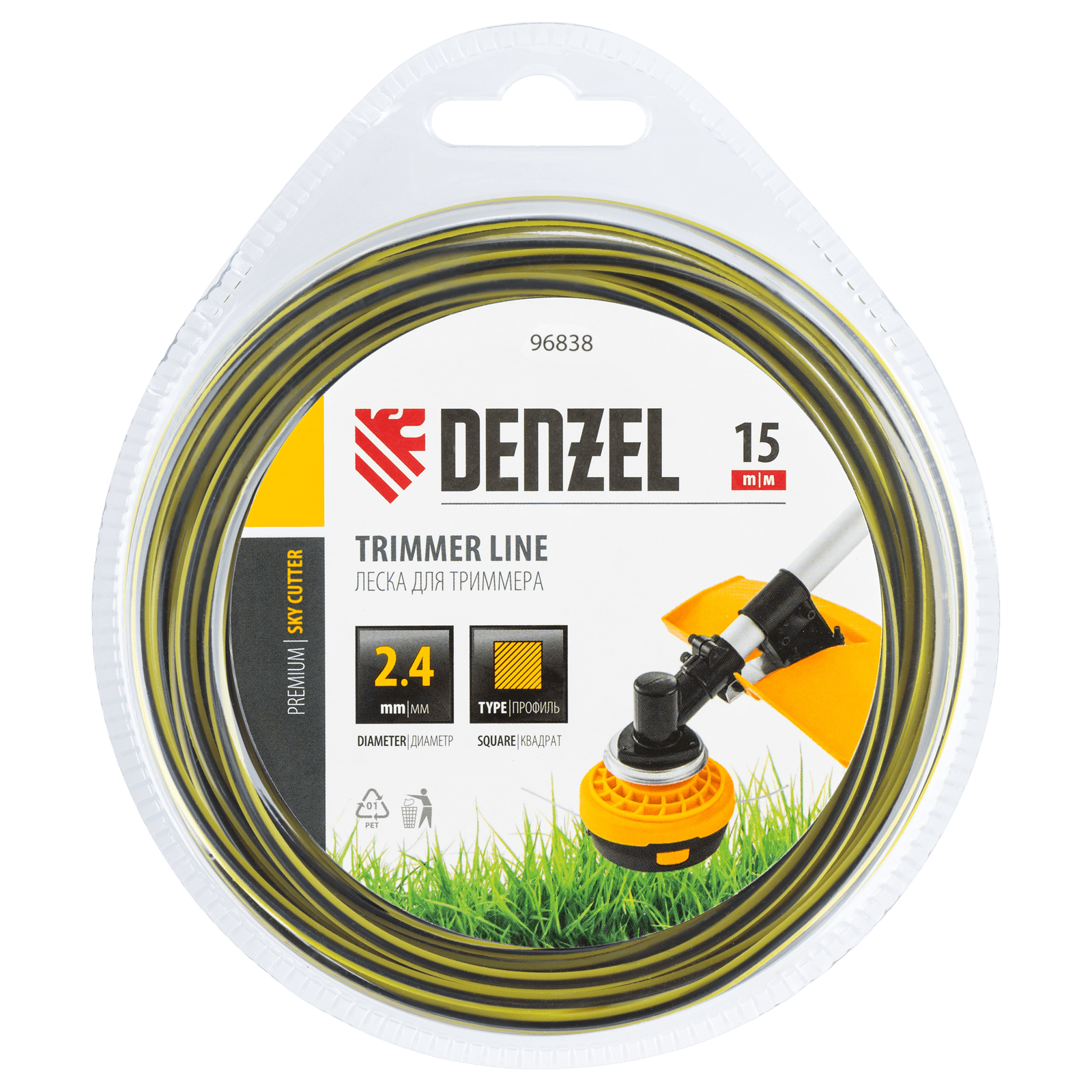 Двухкомпонентная квадратная леска для триммера Denzel SkyCutter 96838 размером 2,4 мм х 15 м, в блистере, используется для скашивания густой газонной травы и борьбы с сорняками. Успешно справляется даже с жесткими и толстыми стеблями, например, с борщевиком. Совместима с электрическими триммерами, также может устанавливаться на бензокосы с объемом двигателя 25-52 см3. Леска оптимальна для использования на дачном участке.