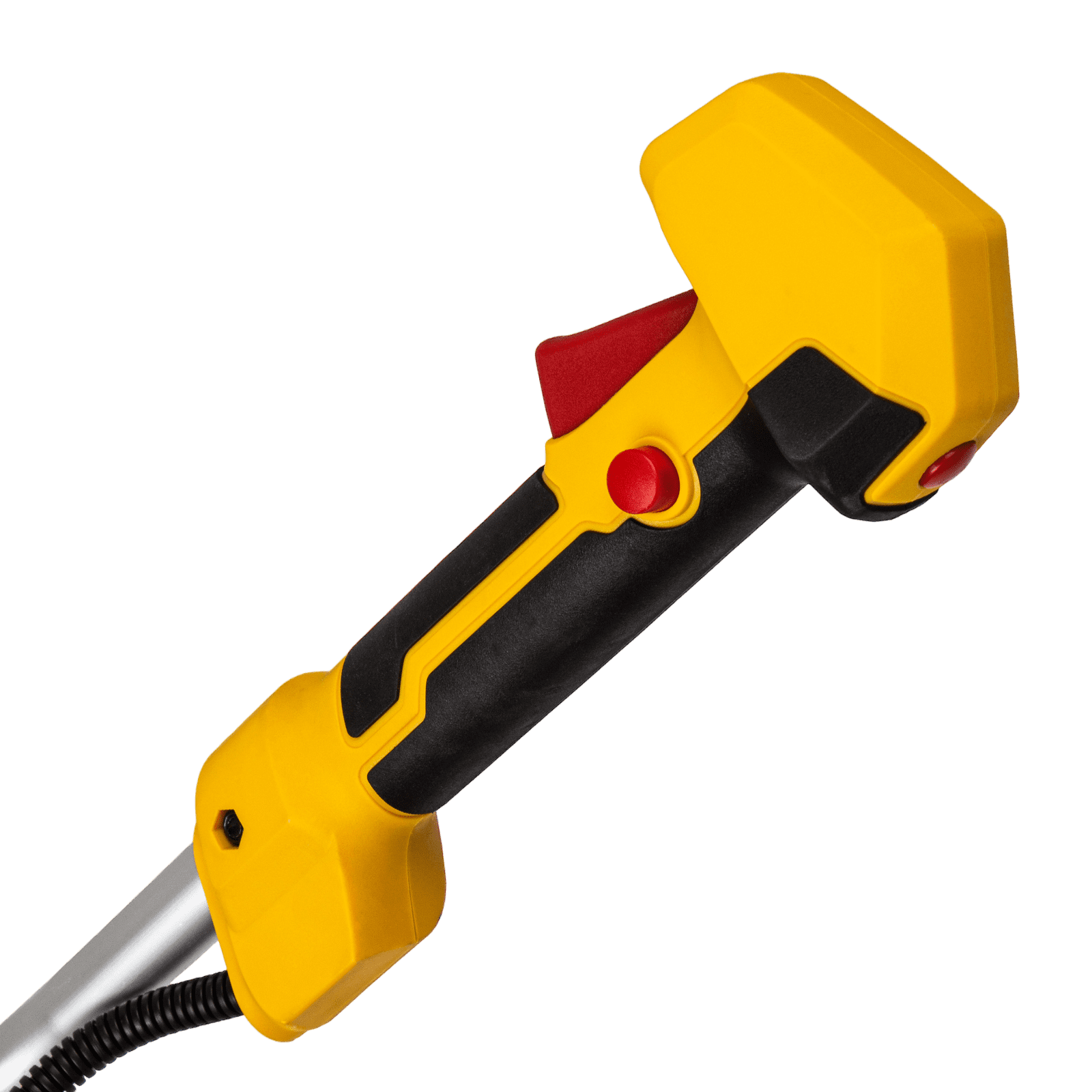 - Комфортная работа — благодаря продуманной форме рукояток и малому весу триммера 3,8 кг его удобно удерживать в руках и маневрировать на сложных участках.